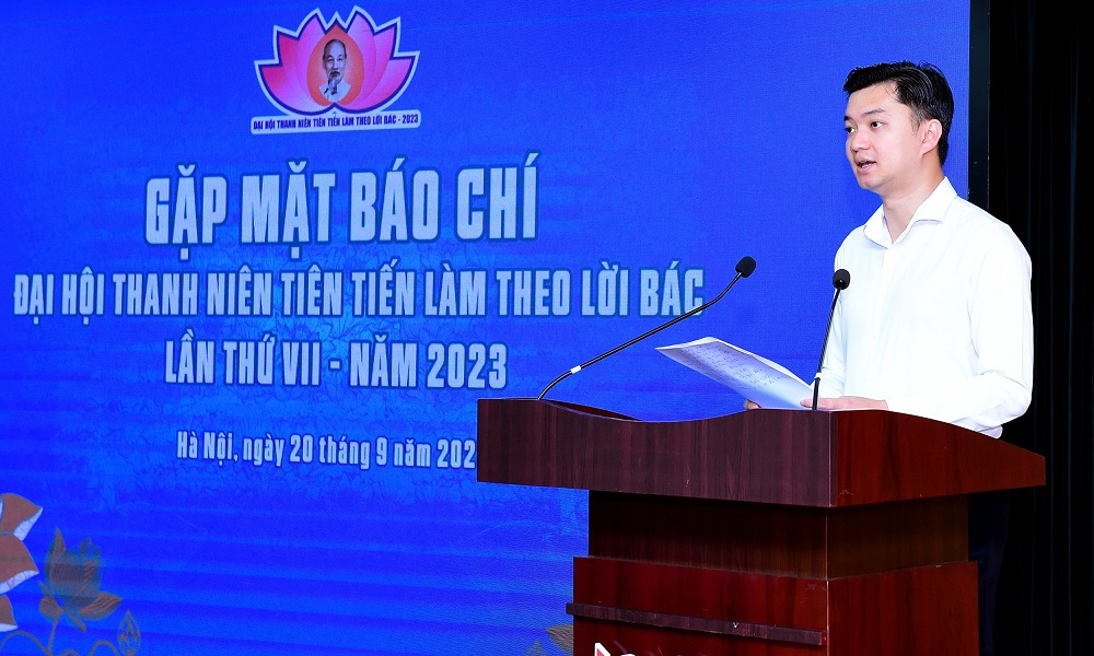 Sáng 20/9, Trung ương Đoàn tổ chức gặp mặt báo chí giới thiệu Đại hội Thanh niên tiên tiến làm theo lời Bác lần thứ VII năm 2023. Đồng chí Nguyễn Minh Triết - Bí thư Trung ương Đoàn, Chủ tịch T.Ư Hội SVVN và đồng chí Nguyễn Thái An - Ủy viên BTV, Trưởng Ban Tuyên giáo T.Ư Đoàn chủ trì gặp mặt báo chí.