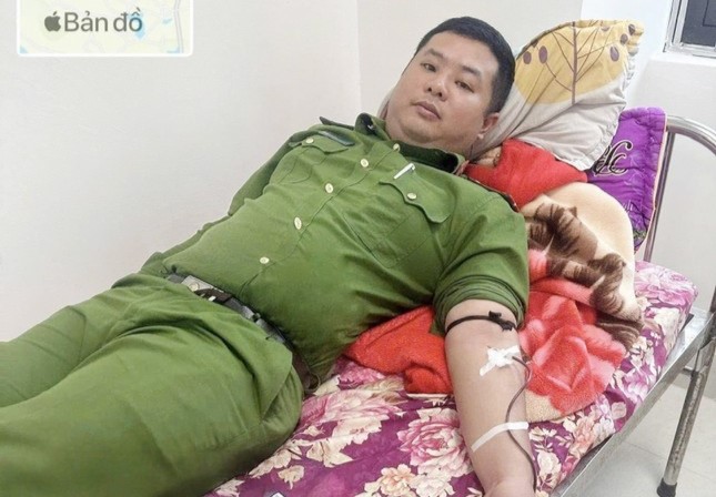 Bệnh nhân này mất nhiều máu nên rất cần nhóm máu A+ để truyền cấp cứu. Dù đang nghỉ trưa, nhưng Đại úy Nông Quốc Dương đã vội vàng đến Trung tâm Y tế huyện Sơn Động để hiến máu cứu người.