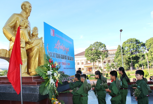 Tại buổi lễ, các đại biểu cùng chiến sĩ đã dâng hương, đặt vòng hoa tại Bia tưởng niệm các chiến sĩ Nam tiến và dâng hoa báo công với Bác tại Tượng đài Bác Hồ với thiếu nhi các dân tộc tỉnh Đắk Lắk.