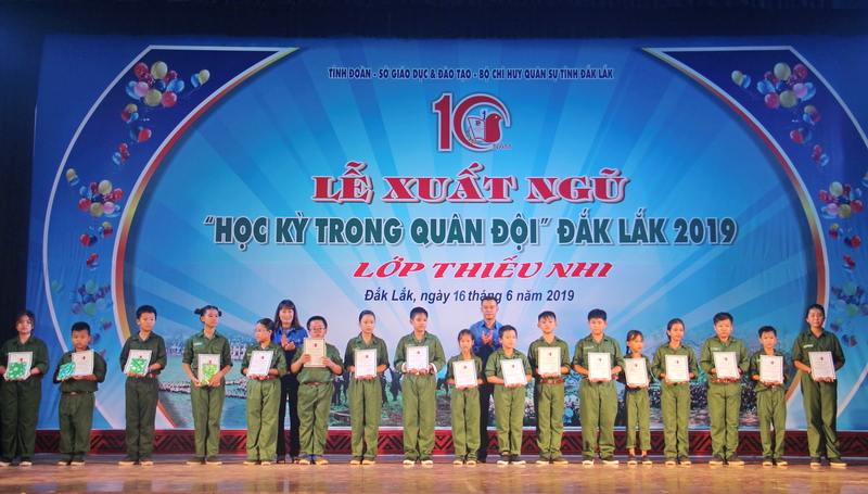 Tại Lễ xuất ngũ, Ban tổ chức đã trao Giấy chứng nhận hoàn thành Chương trình “Học kỳ trong quân đội” năm 2019 cho 100 chiến sĩ lớp thiếu nhi và khen thưởng cho 18 chiến sỹ đạt thành tích xuất sắc trong chương trình.