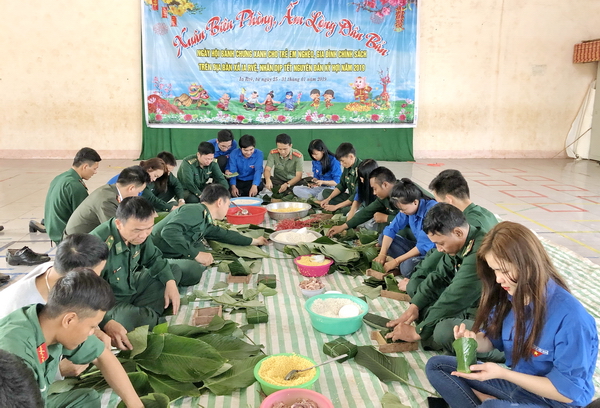 ĐVTN và các chiến sĩ biên phòng tham gia gói bánh chưng |