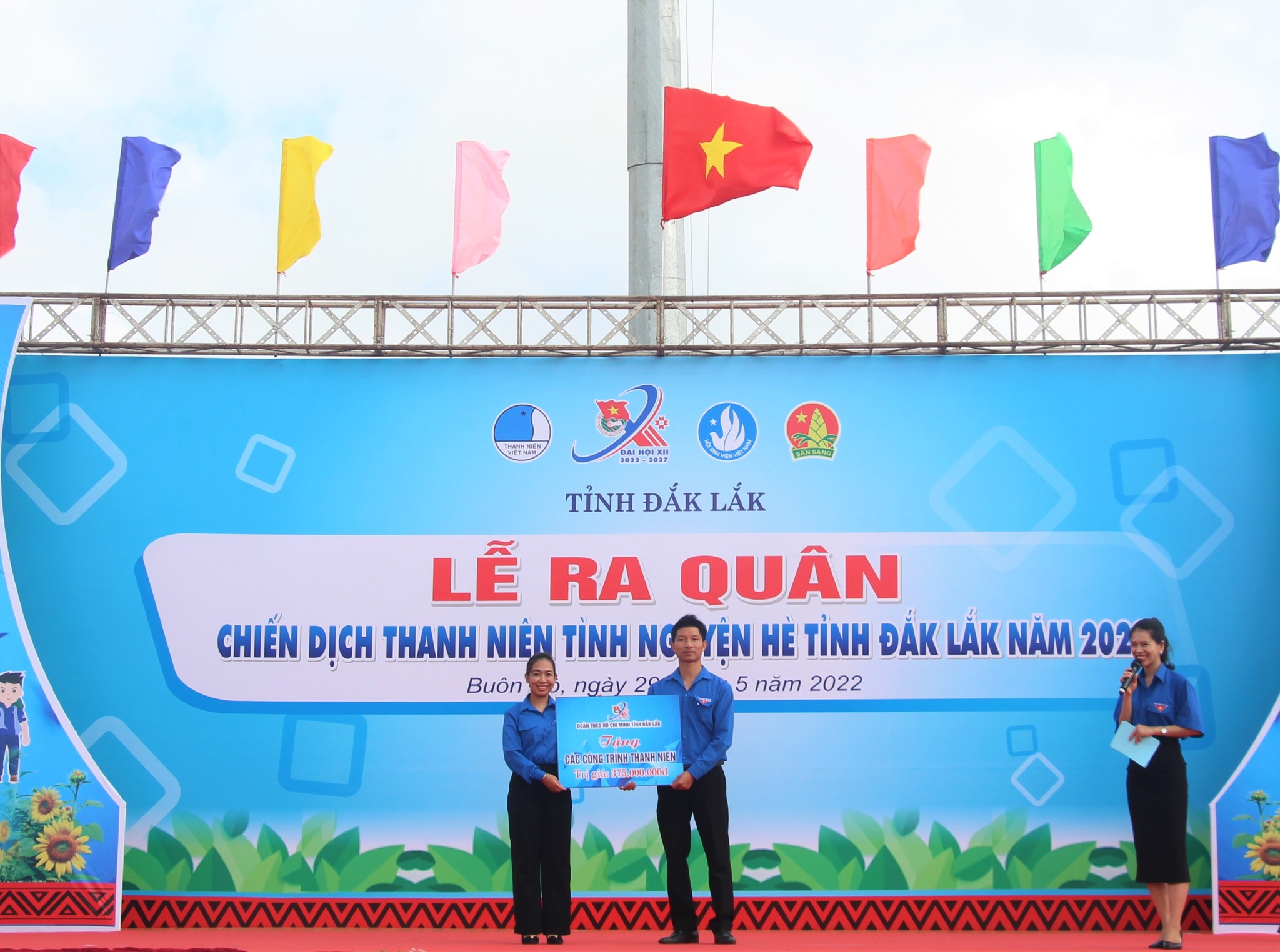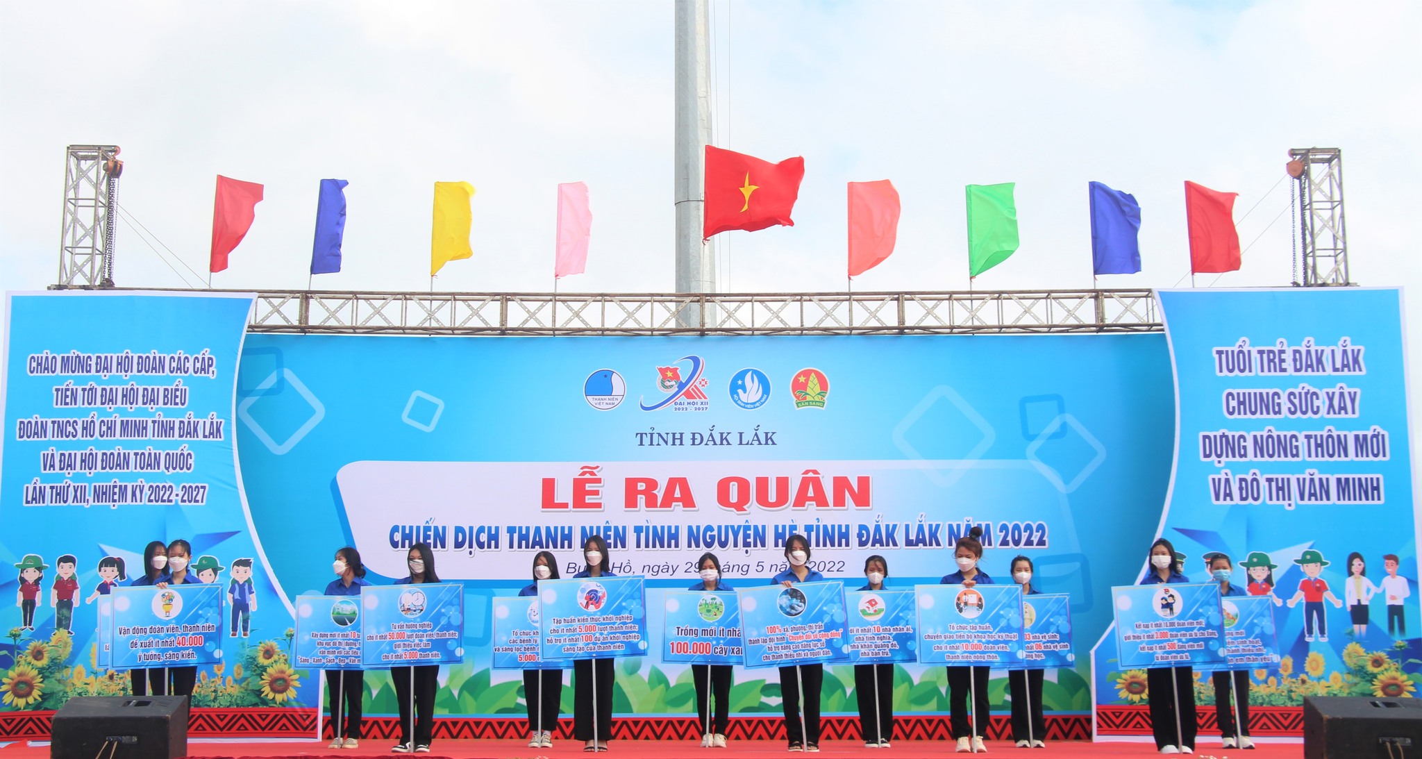 Phó Bí thư Tỉnh ủy Y Biêr Niê trao cờ xuất quân cho Thường trực Tỉnh đoàn và các đội hình tham gia Chiến dịch thanh niên tình nguyện hè năm 2022