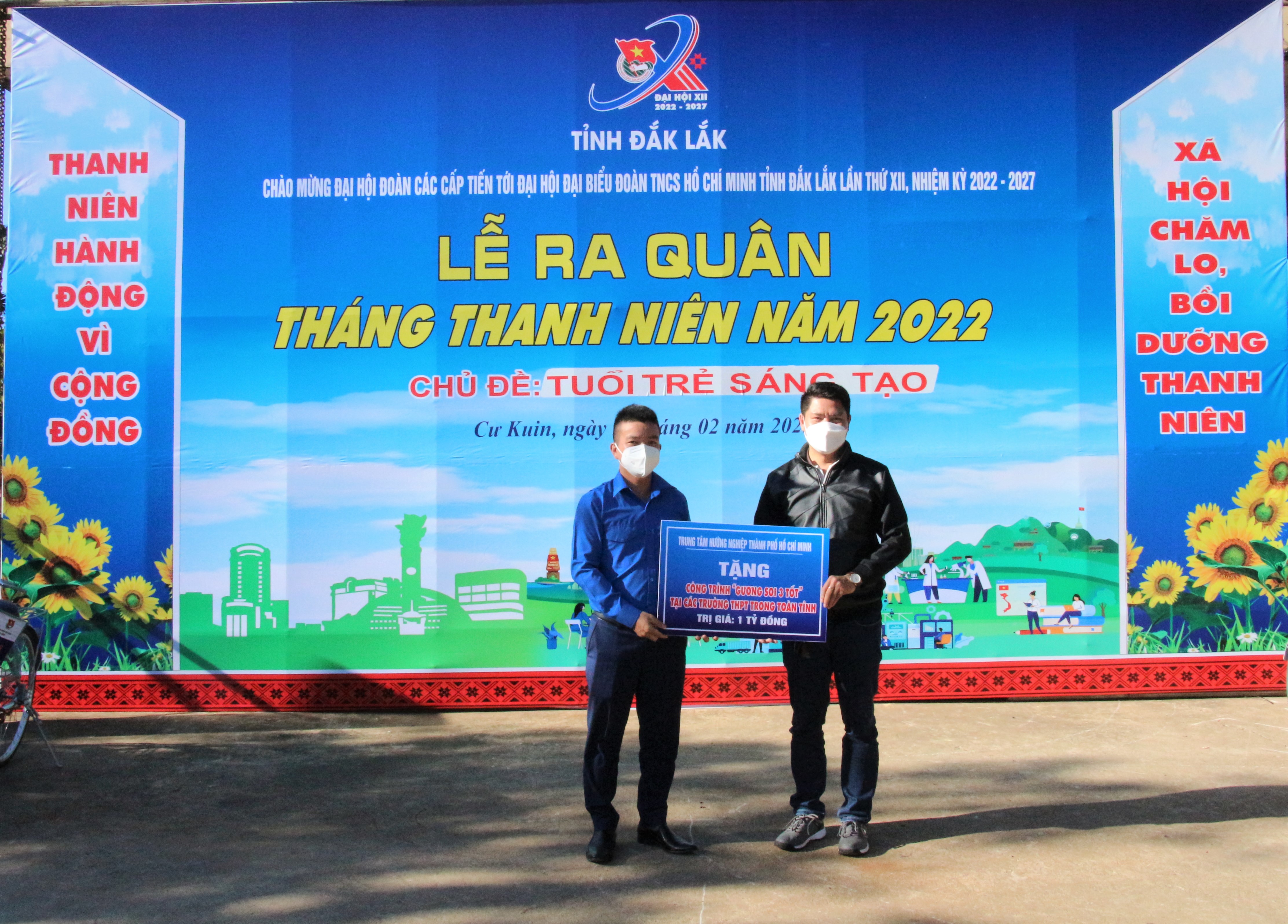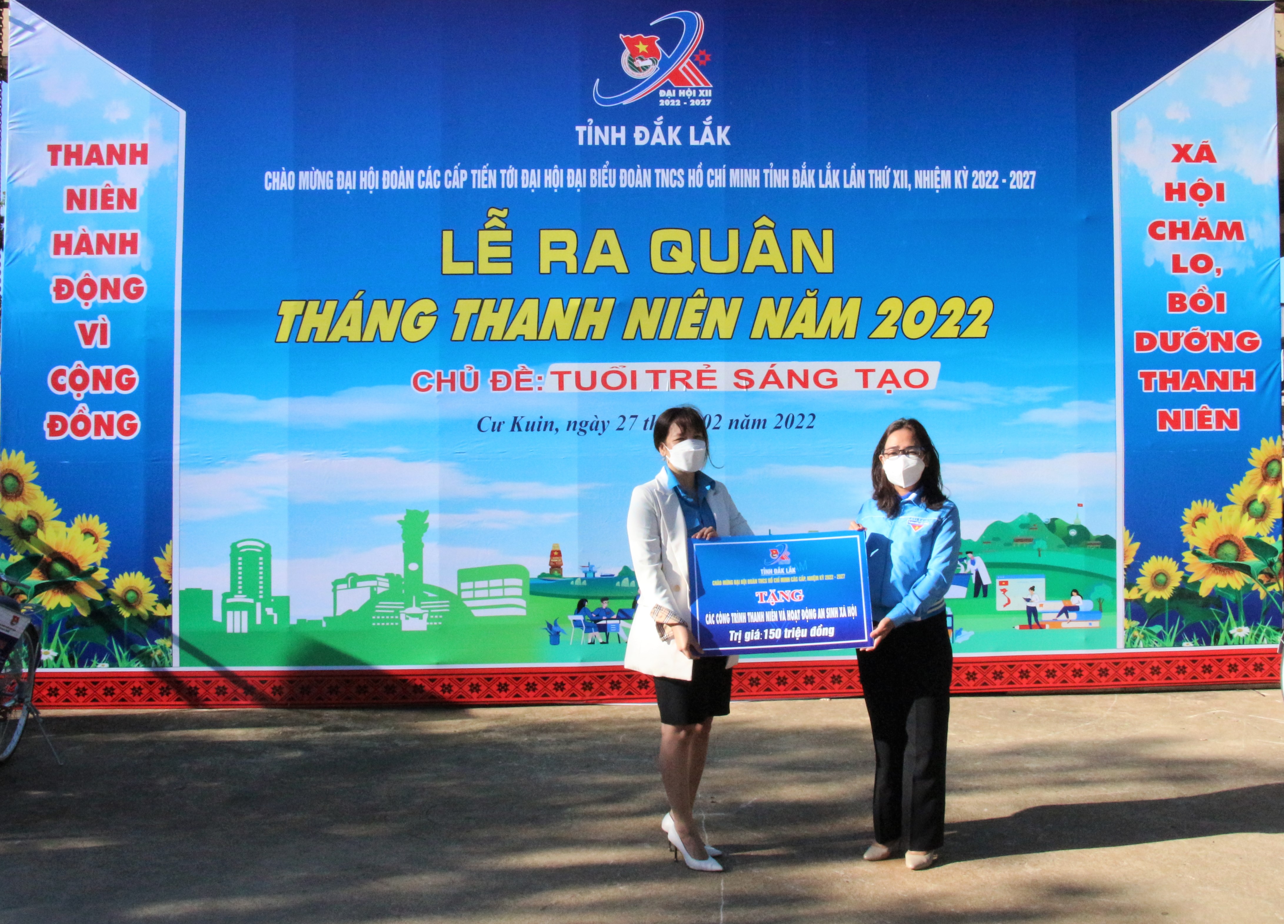 Ngoài ra, hưởng ứng Tháng thanh niên năm 2022 tại Lễ ra quân, Ban Thường vụ Huyện đoàn Cư Kuin cũng triển khai nhiều công trình, phần việc thanh niên ý nghĩa thiết thực như: trao tặng điểm vui chơi cho thiếu nhi trị giá 15 triệu đồng; khởi công xây dựng 01 sân bóng chuyền trị giá 20 triệu đồng; tặng công trình thắp sáng đường quê trị giá 25 triệu; tặng công trình nhà nhân ái trị giá 50 triệu đồng.