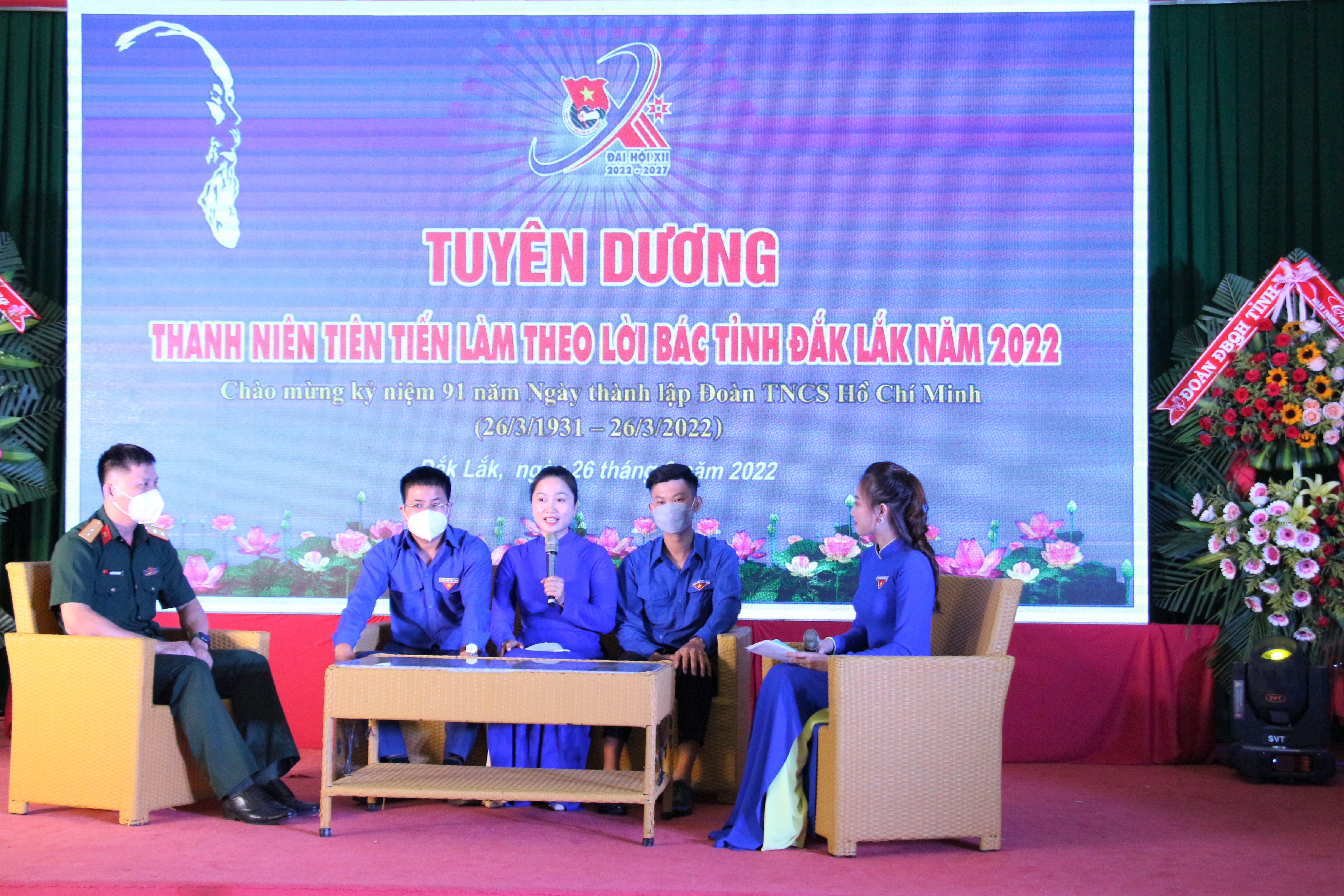Tại Chương trình, Ban Thường vụ Tỉnh đoàn đã tuyên dương 45 gương thanh niên tiên tiến tiêu biểu trên các lĩnh vực; trao giải Cuộc thi sáng tác biểu trưng và bài hát tuyên truyền Đại hội Đoàn TNCS Hồ Chí Minh tỉnh Đắk Lắk lần thứ XII, nhiệm kỳ 2022 – 2027; trao giải thưởng Lý Tự Trọng năm 2022 cho đồng chí Võ Thị Mỹ Trinh, Phó Bí thư Huyện đoàn Cư M’gar; giao lưu với các gương thanh niên tiên tiến trên các lĩnh vực.