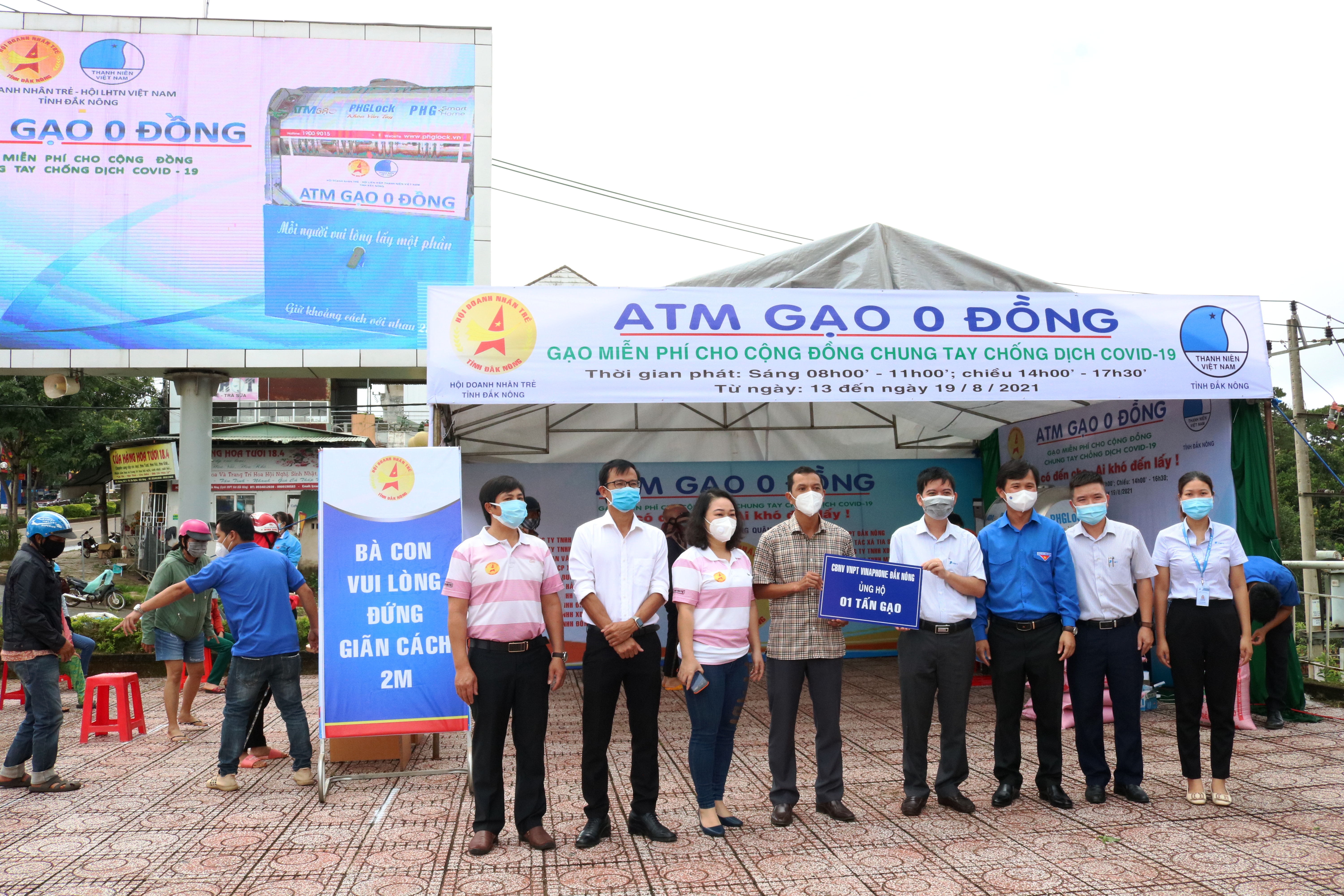 Tại TP. Gia Nghĩa, chương trình diễn ra từ ngày 13-19/8, ATM gạo 0 đồng được đặt tại VNPT Đắk Nông, đường 23/3, phường Nghĩa Trung. Mỗi người dân đến với chương trình sẽ nhận được 3 kg do máy tự động xuất ra. Trong buổi sáng ngày 13/8, Ban tổ chức đã phát hơn 1,5 tấn gạo cho người dân trên địa bàn thành phố.