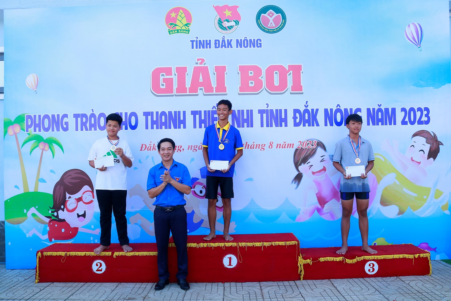 Kết quả, Ban tổ chức đã trao giải Nhất toàn đoàn cho đơn vị Huyện đoàn Đắk Mil; giải Nhì: Câu lạc bộ bơi Ban Chỉ huy Quân sự thành phố Gia Nghĩa; giải Ba: Câu lạc bộ Ngôi nhà của bé. Đồng thời trao 120 giải Nhất, Nhì, Ba cho các cá nhân xuất sắc ở phần thi bơi tự do, bơi ếch, đồng đội tiếp sức ở các nhóm tuổi khác nhau.