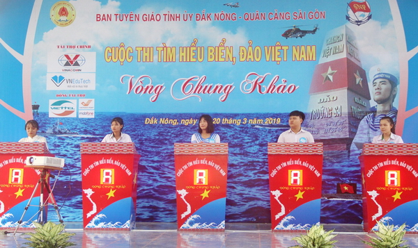 * Trước đó, tại Trung tâm hoạt động thanh thiếu nhi tỉnh, Ban Tuyên giáo Tỉnh ủy Đắk Nông phối hợp với Quân cảng Sài Gòn và Tỉnh đoàn Đắk Nông tổ chức Vòng chung khảo Cuộc thi "Tìm hiểu biển, đảo Việt Nam".