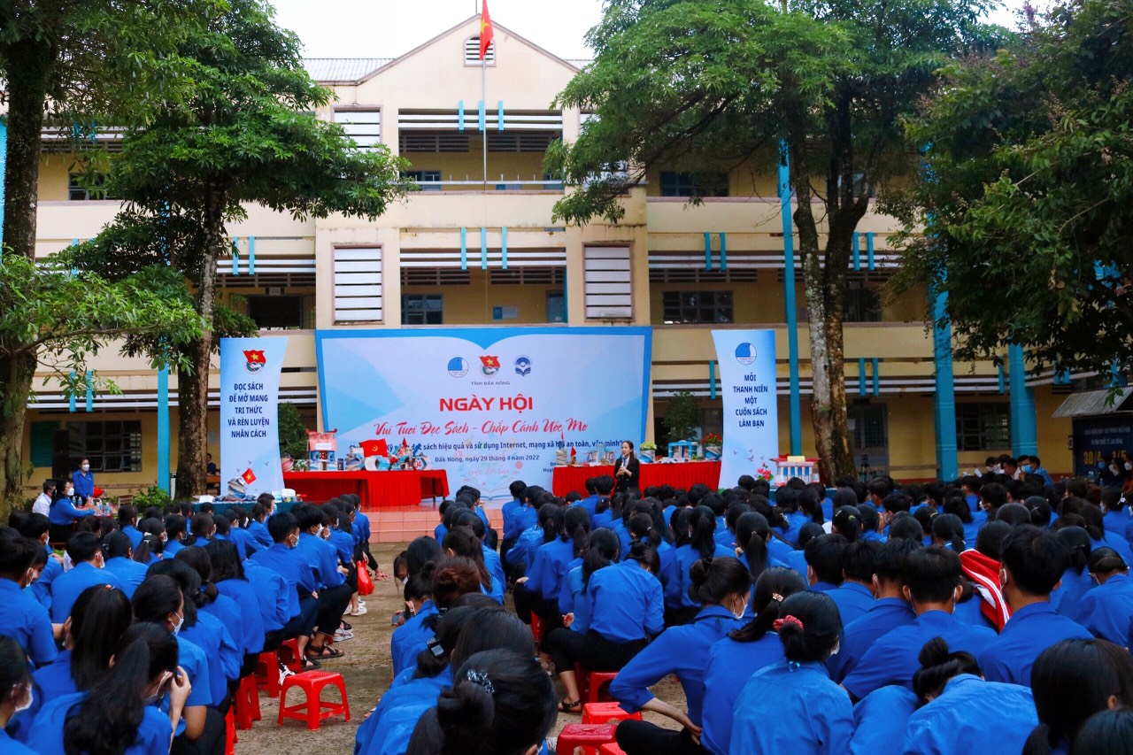 ĐTN: Ngày hội do Ban Thường vụ Tỉnh đoàn, Hội LHTN Việt Nam tỉnh và Thư viện tỉnh Đắk Nông phối hợp tổ chức vào ngày 29/4, tại Trường THPT Nguyễn Tất Thành (Đắk R’lấp), với sự tham gia của gần 900 đoàn viên thanh niên, học sinh trong trường.
