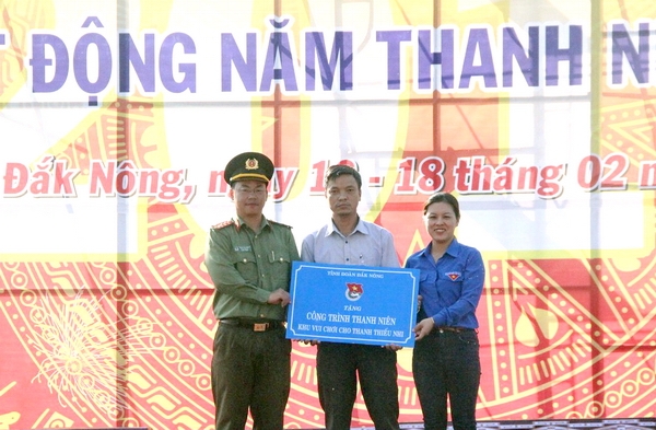 Nhân dịp này, Tỉnh đoàn đã trao tặng bằng khen của BCH Trung ương Đoàn cho các tập thể, cá nhân đạt thành tích xuất sắc trong công tác Đoàn và phong trào thanh thiếu nhi năm 2018. Các huyện, thị đoàn và đoàn trực thuộc trao tặng Công trình thanh niên khu vui chơi thanh thiếu nhi trị giá hơn 20 triệu đồng cho trường tiểu học Phan Đình Giót (thị xã Gia Nghĩa).