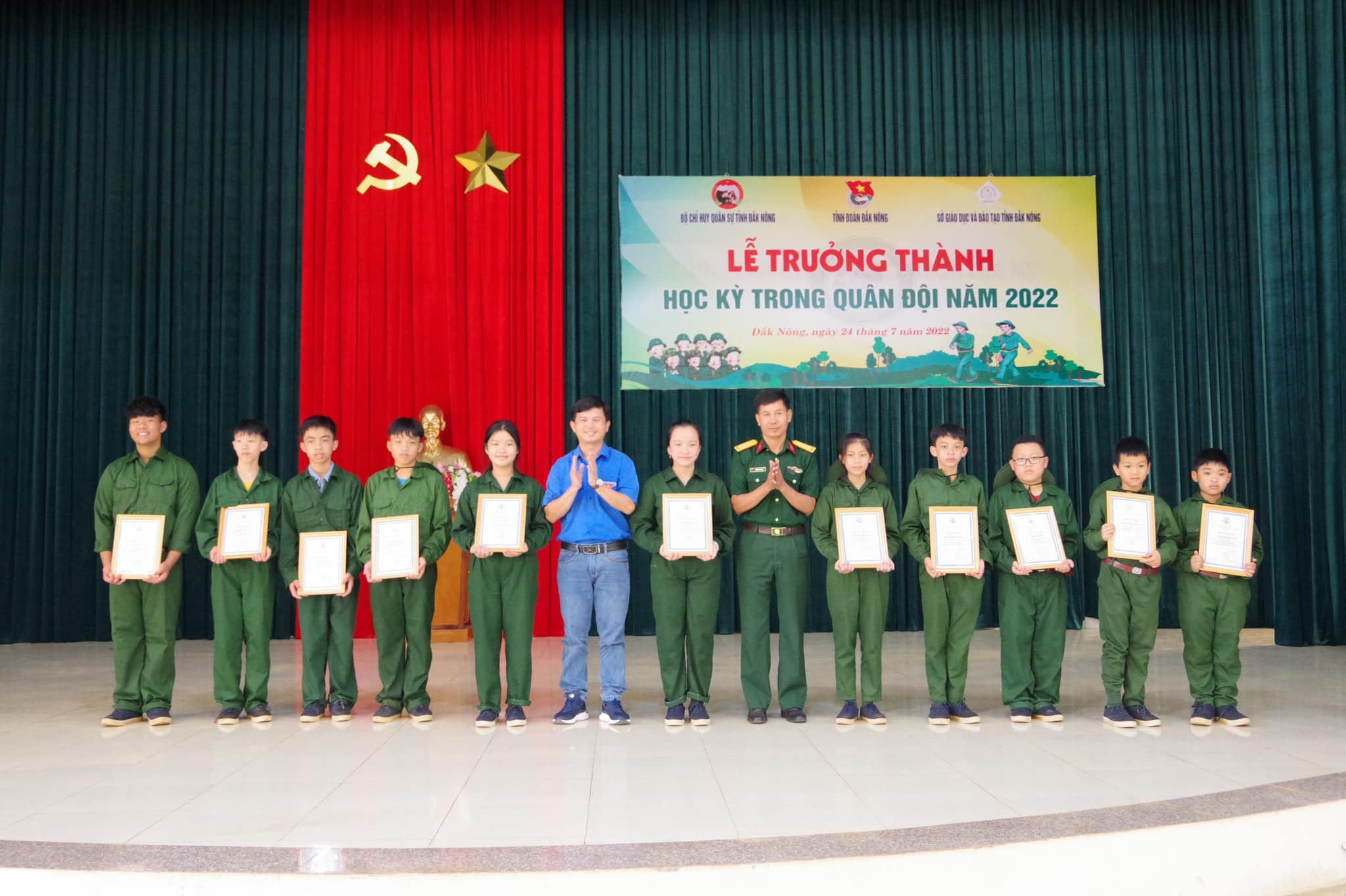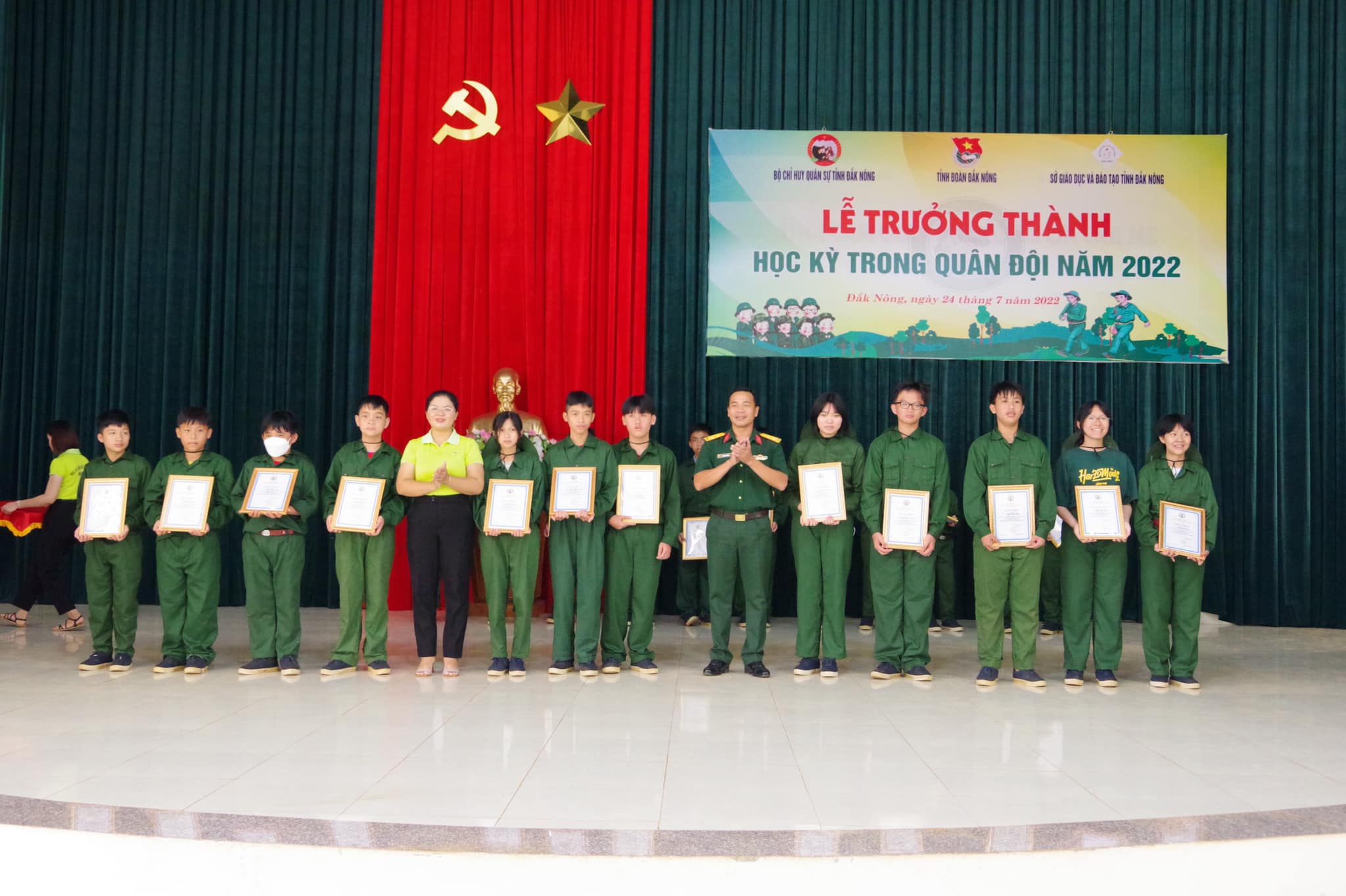 ĐTN: Ngày 24/7, tại Trung đoàn Bộ binh 994 (Bộ Chỉ huy Quân sự tỉnh Đắk Nông), Ban Thường vụ Tỉnh đoàn, Bộ Chỉ huy Quân sự tỉnh, Sở Giáo dục và Đào tạo tỉnh phối hợp tổ chức Lễ trưởng thành chương trình “Học kỳ trong quân đội” năm 2022.