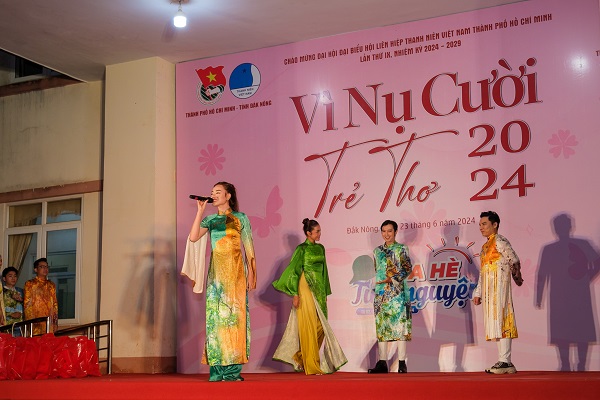 Bên cạnh đó, các nghệ sĩ trẻ như Hoa hậu hoàn vũ Việt Nam Ngọc Châu, ca sĩ Quốc Đại, ca sĩ Lê Minh (MTV), MC Quỳnh Hoa, ca sĩ Ngọc Linh, ca sĩ Nam Cường, NTK áo dài Việt Hùng và nhiều nghệ sĩ khác đã tổ chức đêm giao lưu văn nghệ miễn phí với các tiết mục hấp dẫn, đặc sắc để phục vụ bà con huyện Đắk G’long, tỉnh Đắk Nông vào tối 23/6/2024.