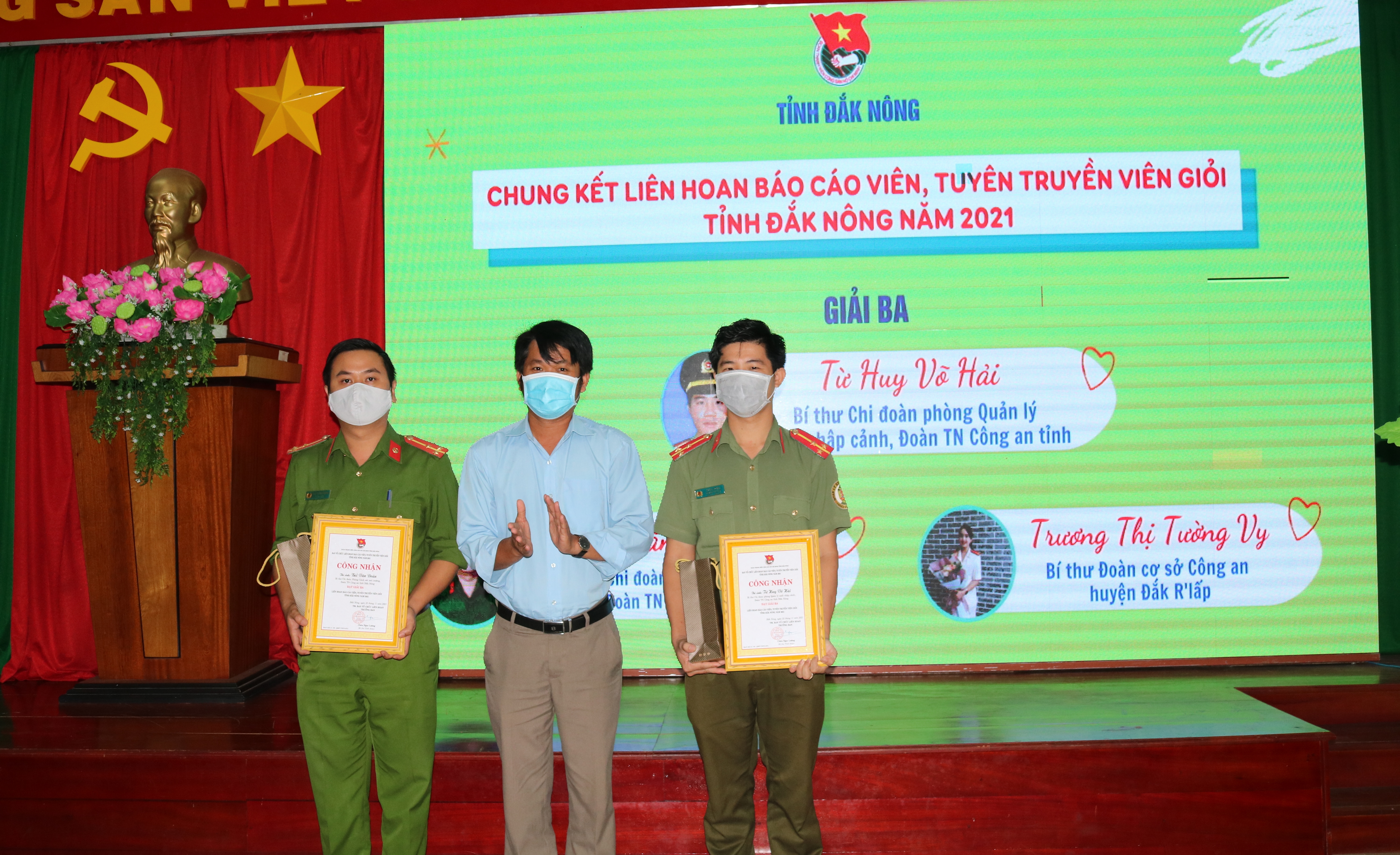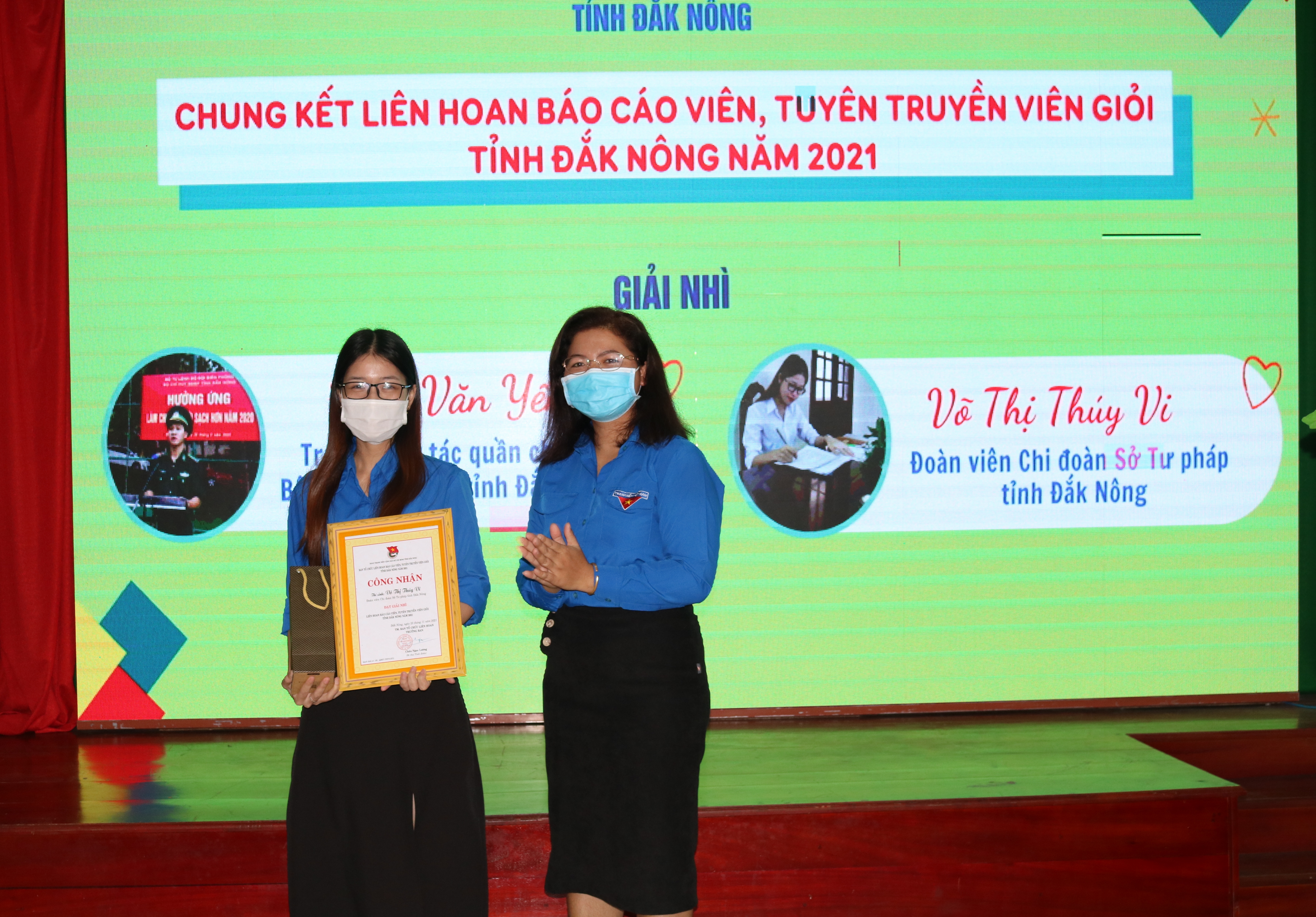 Căn cứ kết quả điểm bình chọn trên mạng xã hội facebook và điểm Ban Giám khảo chấm, Ban Tổ chức đã trao giải cho 10 thí sinh gồm: 01 giải Nhất; 02 giải Nhì; 03 giải Ba; 04 giải Khuyến khích. Trong đó, giải Nhất thuộc về thí sinh Nguyễn Thị Hải Vân, Giáo viên TPT Đội trường Tiểu học Nguyễn Viết Xuân, xã Thuận An, huyện Đắk Mil. Giải Nhì thuộc về 02 thí sinh là Võ Thị Thúy Vi, Đoàn viên Chi đoàn Sở Tư pháp và Đinh Văn Yến, Trợ lý công tác quần chúng, Bộ chỉ huy Bộ đội Biên phòng tỉnh Đắk Nông.