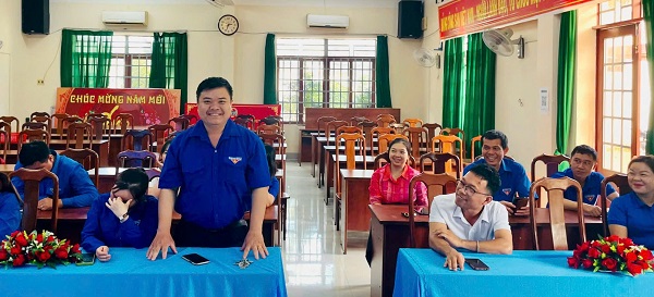 Đồng chí Lê Đức Ân - Phó Bí thư Huyện đoàn, Chủ nhiệm CLB lý luận trẻ triển khai các nội dung tại buổi sinh hoạt