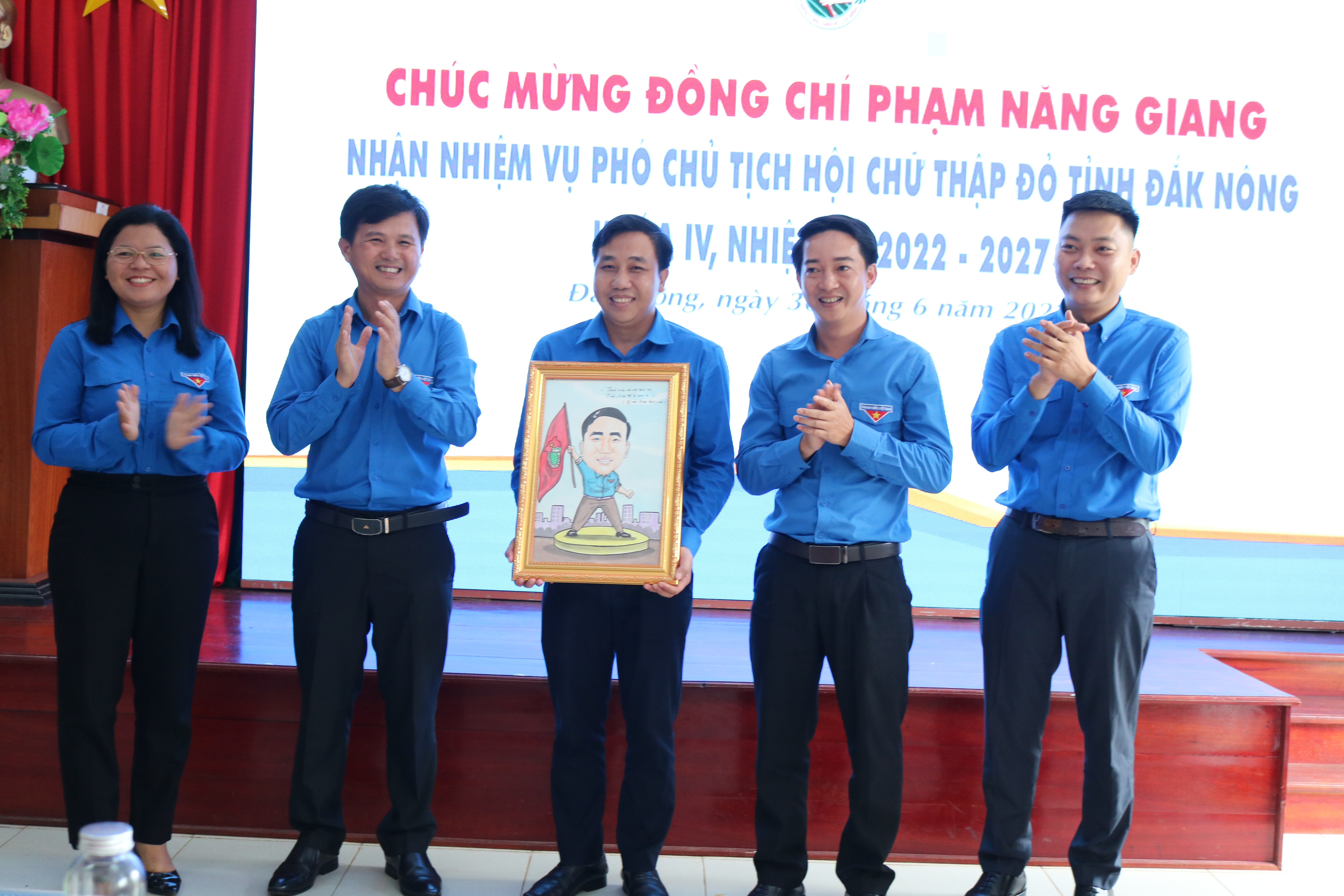 Tại hội nghị, Ban Chấp hành Tỉnh đoàn đã tặng quà chúc mừng đồng chí Phạm Năng Giang, Ủy viên Ban Thường vụ, Trưởng Ban Tổ chức – Xây dựng Đoàn Tỉnh đoàn trúng cử chức danh Phó Chủ tịch Hội Chữ thập đỏ tỉnh Đắk Nông lần thứ IV, nhiệm kỳ 2022 - 2027.