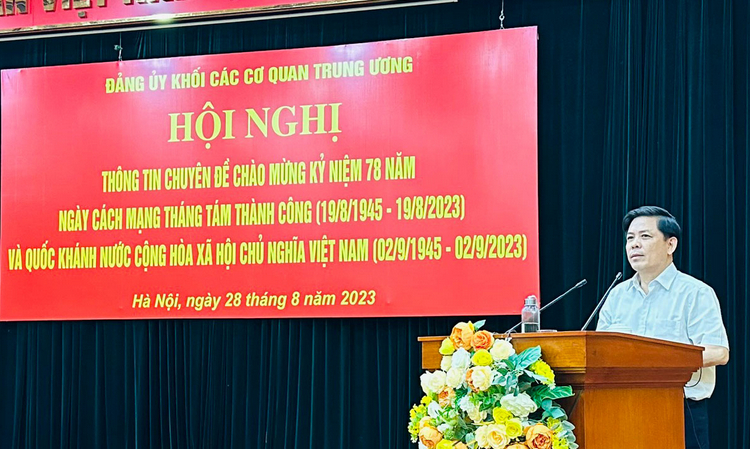 Phát biểu kết luận Hội nghị, đồng chí Nguyễn Văn Thể - Ủy viên T.Ư Đảng, Bí thư Đảng ủy Khối các cơ quan Trung ương nhấn mạnh, Hội nghị là đợt sinh hoạt chính trị nhằm tăng cường giáo dục truyền thống và đạo đức cách mạng cho cán bộ, đảng viên, công chức, viên chức, đoàn viên, hội viên và người lao động trong toàn Đảng bộ Khối, góp phần thực hiện tốt nhiệm vụ xây dựng, chỉnh đốn Đảng và xây dựng hệ thống chính trị, nâng cao năng lực lãnh đạo và sức chiến đấu của Đảng.