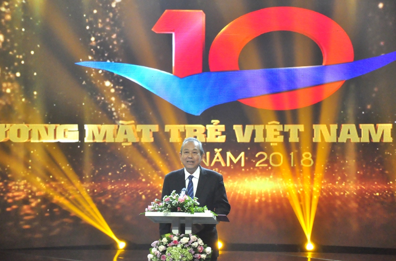 Đồng chí Trương Hòa Bình - Ủy viên Bộ chính trị, Phó Thủ tướng thường trực Chính phủ nước Cộng hòa XHCN Việt Nam trao tặng Bằng khen Chính phủ; đồng chí Lê Quốc Phong - Ủy viên dự khuyết BCH Trung ương Đảng, Bí thư thứ nhất Trung ương Đoàn trao cup cho 10 Gương mặt trẻ Việt Nam tiêu biểu năm 2018.