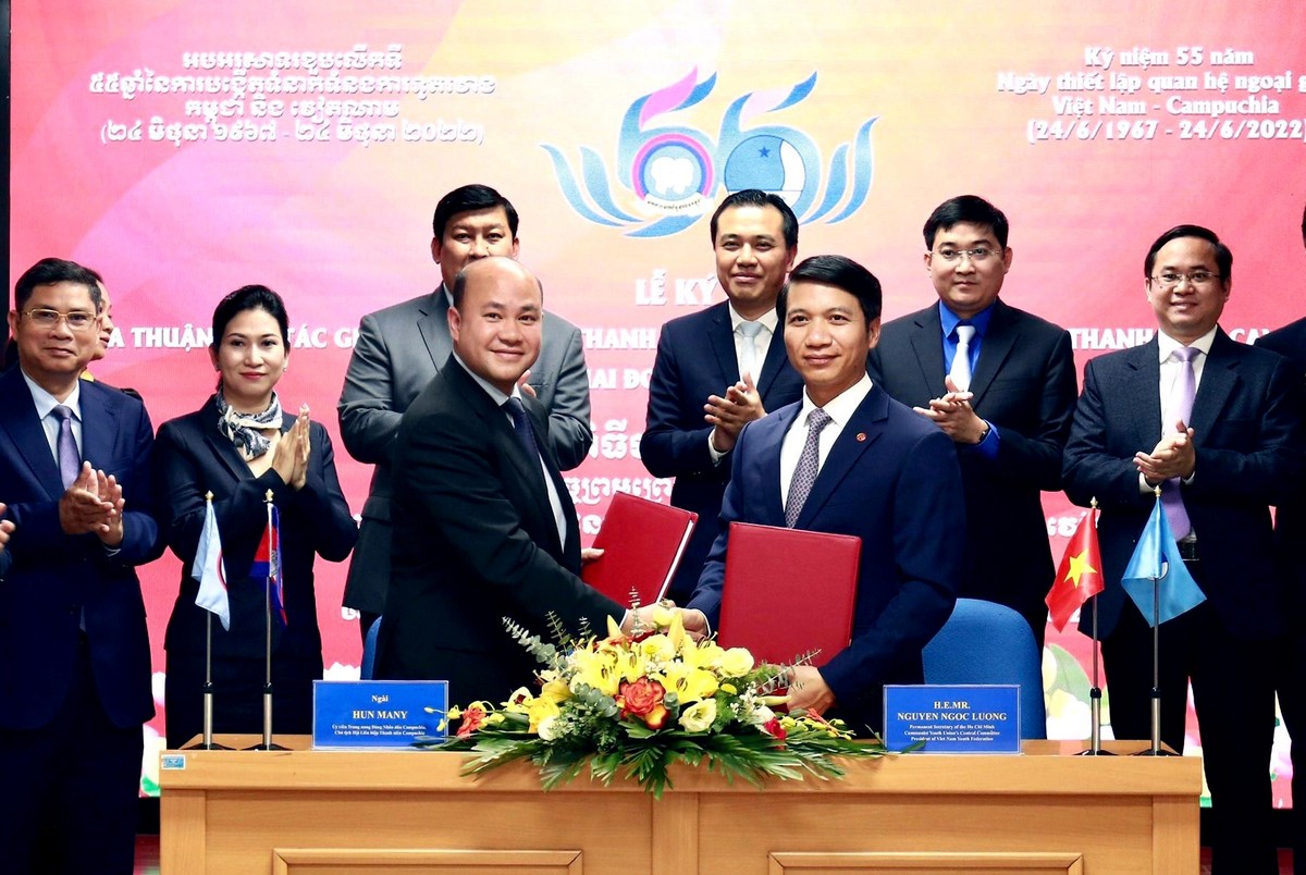 Một trong những điểm nhấn trong hợp tác thanh niên Việt Nam - Campuchia là việc T.Ư Hội LHTN Việt Nam và T.Ư Hội LHTN Campuchia ký kết thỏa thuận hợp tác với nhiều nội dung ý nghĩa, thiết thực cho tuổi trẻ và nhân dân mỗi nước.