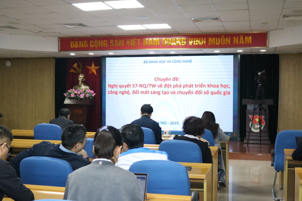 Tại hội nghị, lãnh đạo Bộ Khoa học và Công nghệ đã trình bày chuyên đề về những đột phá trong phát triển khoa học, công nghệ, đổi mới sáng tạo và chuyển đổi số quốc gia, bám sát tinh thần Nghị quyết số 57-NQ/TW ngày 22/12/2024 của Bộ Chính trị. Đây không chỉ là nhiệm vụ cấp bách trước mắt mà còn là chiến lược dài hạn, đòi hỏi sự chung tay mạnh mẽ của cả hệ thống chính trị, đặc biệt là vai trò tiên phong, dẫn dắt của các tổ chức chính trị - xã hội.