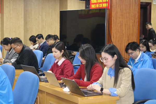 Các đại biểu tham dự hội nghị tại điểm cầu Trung ương Đoàn TNCS Hồ Chí Minh
