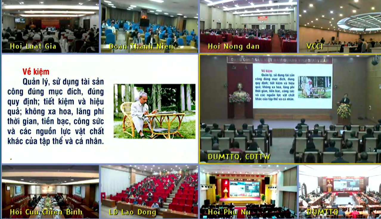 Điểm cầu trung tâm tại Đảng ủy Mặt trận tổ quốc Việt Nam, các đoàn thể Trung ương
