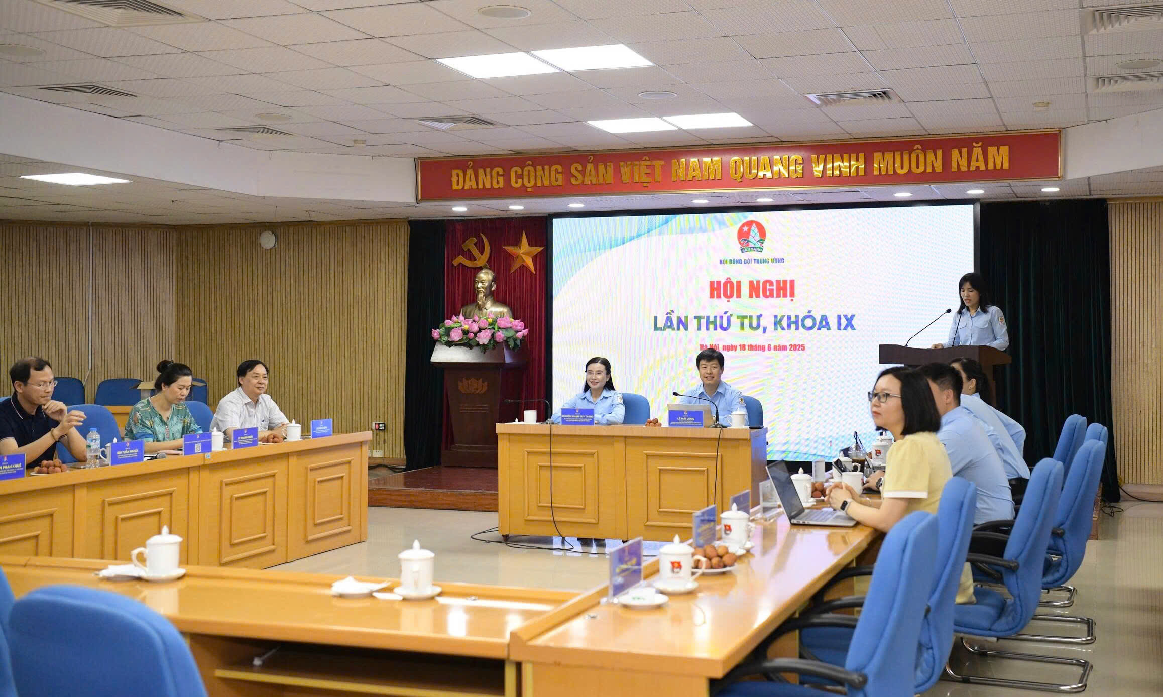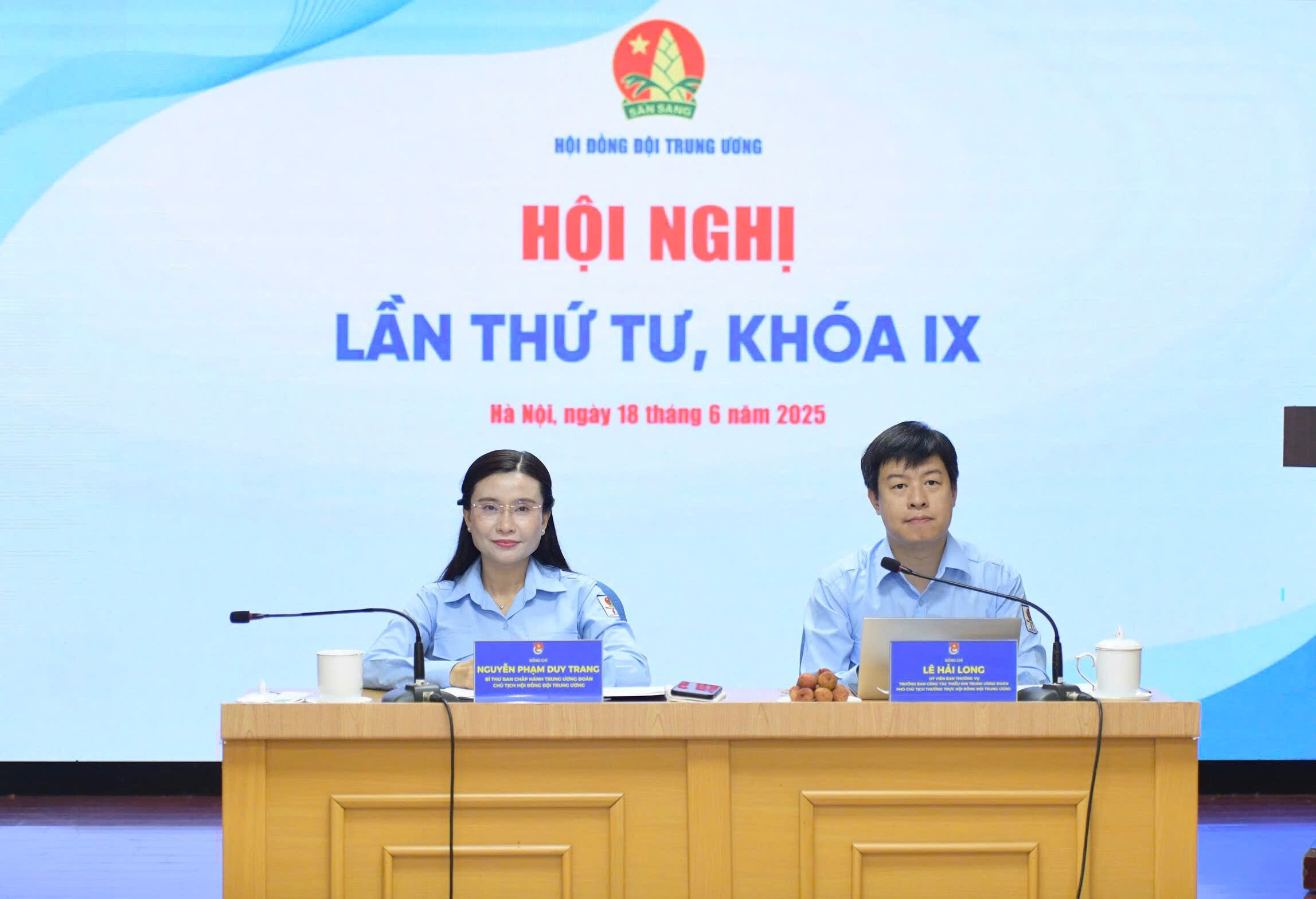 Sáng 18/6, tại Hà Nội, đồng chí Nguyễn Phạm Duy Trang, Bí thư Trung ương Đoàn, Chủ tịch Hội đồng Đội Trung ương và đồng chí Lê Hải Long, Trưởng Ban Công tác thiếu nhi Trung ương Đoàn, Phó Chủ tịch Hội đồng Đội Trung ương chủ trì hội nghị Hội đồng Đội Trung ương lần thứ tư, khoá IX.