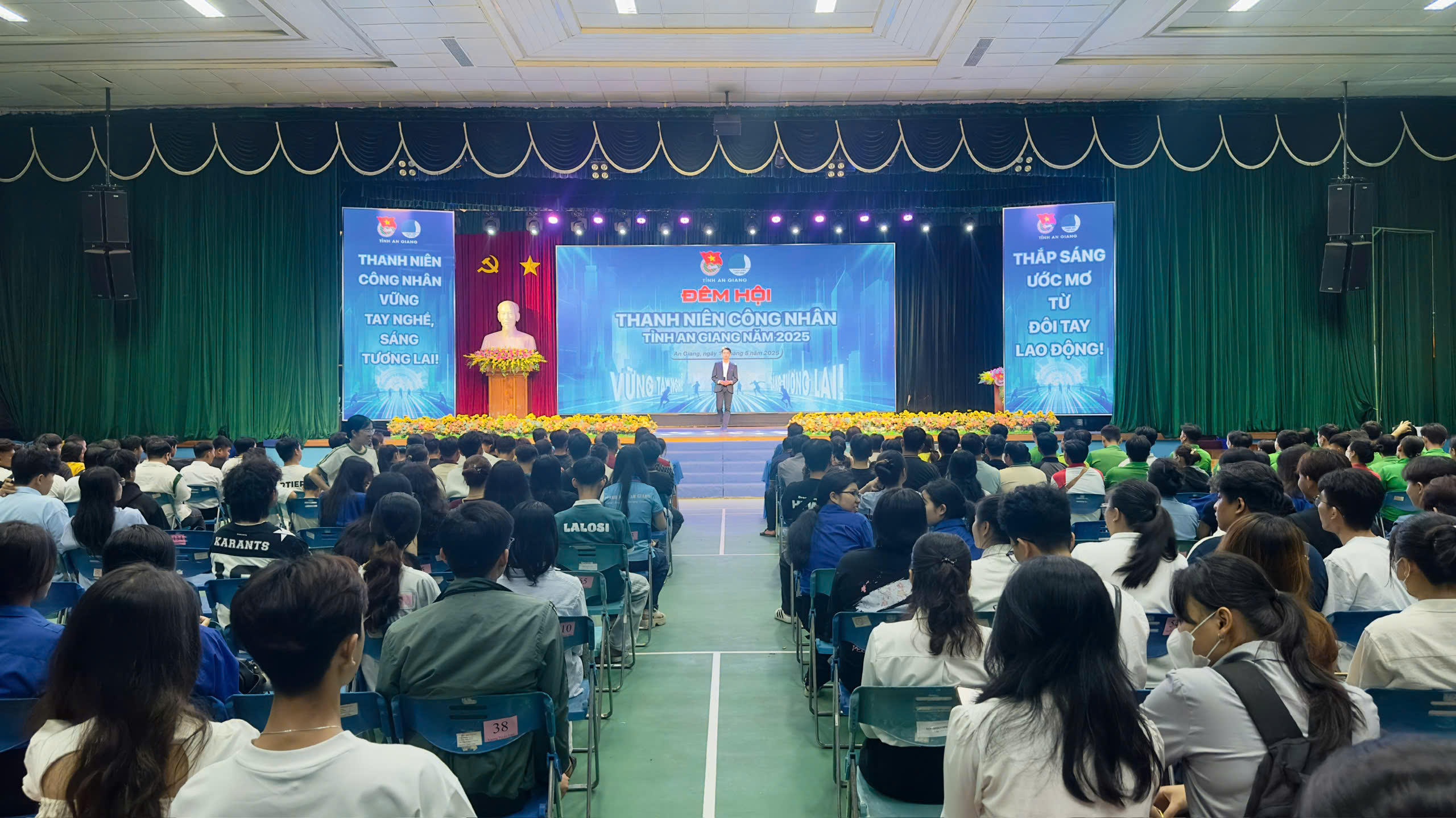 Phát biểu tại buổi lễ, đồng chí Đỗ Minh Sang, Phó Bí thư Tỉnh đoàn, Chủ tịch Hội LHTN Việt Nam tỉnh An Giang nhấn mạnh: “Đêm hội không chỉ là dịp để giao lưu, kết nối, sẻ chia mà còn là lời tri ân sâu sắc gửi đến các bạn - những người trẻ đang miệt mài ngày đêm cống hiến trong nhà máy, công xưởng. Qua đó, chúng tôi mong muốn tiếp thêm động lực, niềm tin và khích lệ tinh thần cho các bạn tiếp tục phát huy vai trò, trách nhiệm của mình trong sự nghiệp phát triển kinh tế - xã hội của tỉnh”. Đồng thời, mong muốn thanh niên công nhân hãy tiếp tục nuôi dưỡng khát vọng, giữ vững tinh thần lạc quan, chăm chỉ học tập, nâng cao tay nghề, trau dồi đạo đức nghề nghiệp. Đừng ngừng mơ ước, và cũng đừng ngần ngại khó khăn - vì chính trong gian khó, bản lĩnh thanh niên càng được tôi rèn và tỏa sáng.