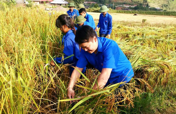 Đoàn Thanh niên huyện Tủa Chùa, giúp gia đình chính sách thu hoạch lúa Chiêm Xuân