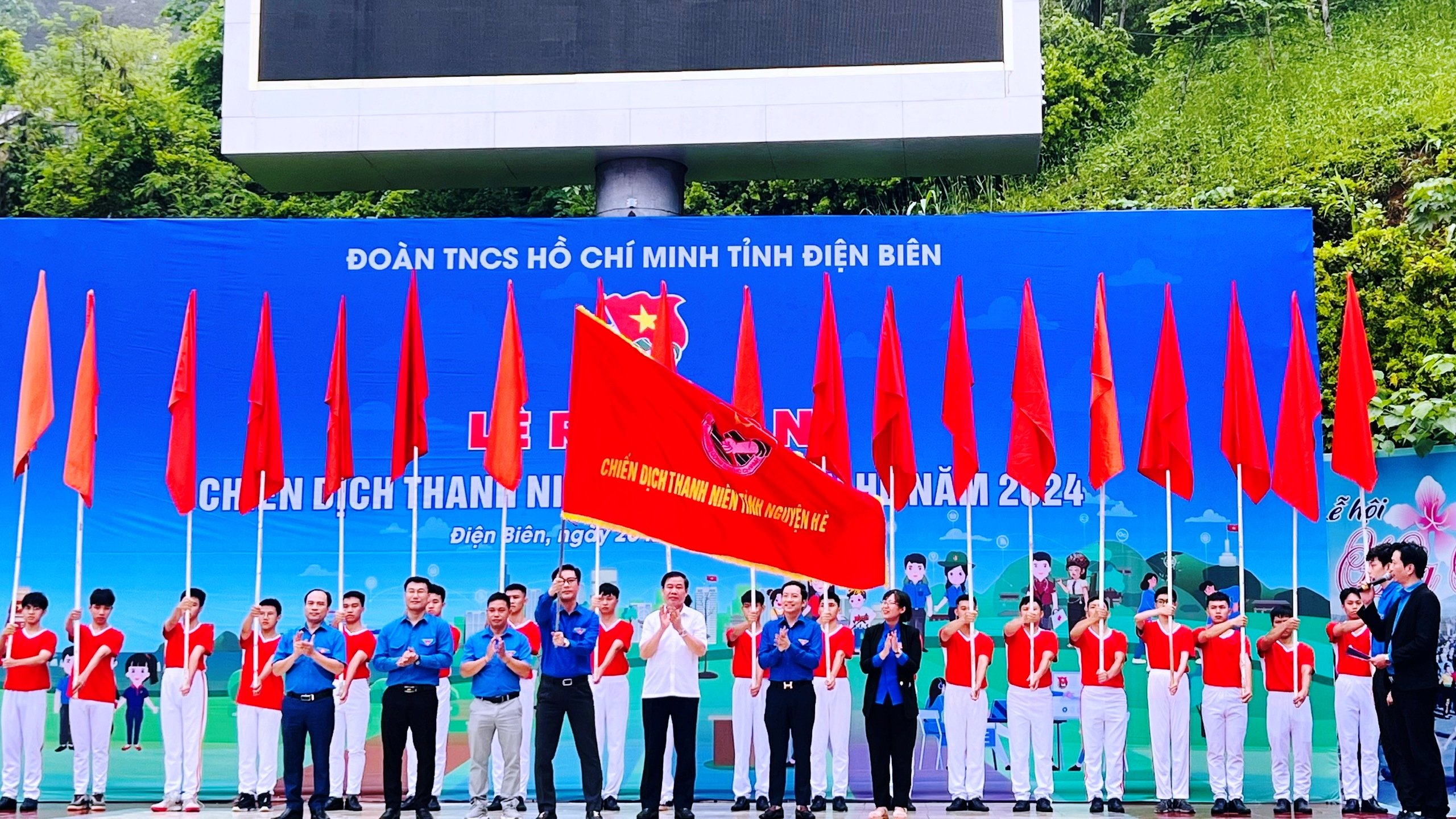Các đồng chí lãnh đạo thực hiện nghi thức trao cờ lệnh ra quân Chiến dịch TNTN hè năm 2024