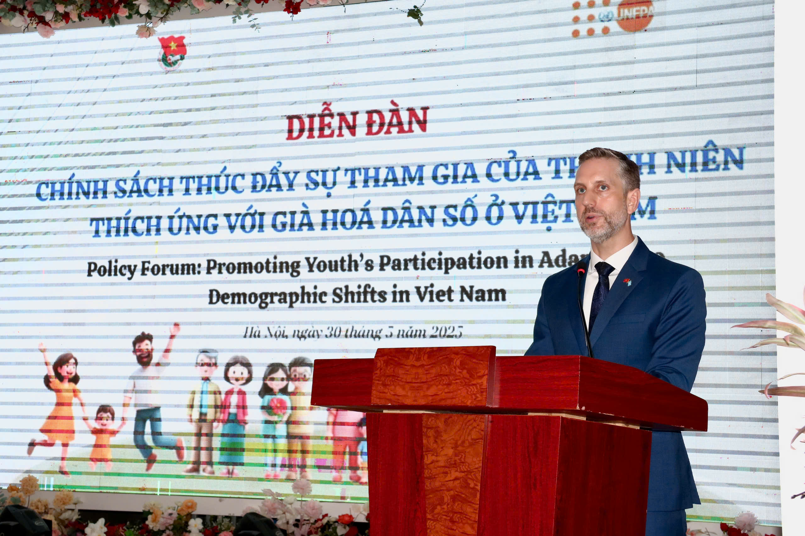 Ông Matt Jackson rất vui mừng được tham dự diễn đàn quan trọng này - Đây là một nỗ lực chung giữa UNFPA và Trung ương Đoàn nhằm trao quyền cho thanh niên trở thành những tác nhân tích cực trong thúc đẩy bình đẳng giới, sức khoẻ tình dục, sức khỏe sinh sản và theo quyền, cũng như chuẩn bị sớm cho một quá trình già hóa khỏe mạnh.