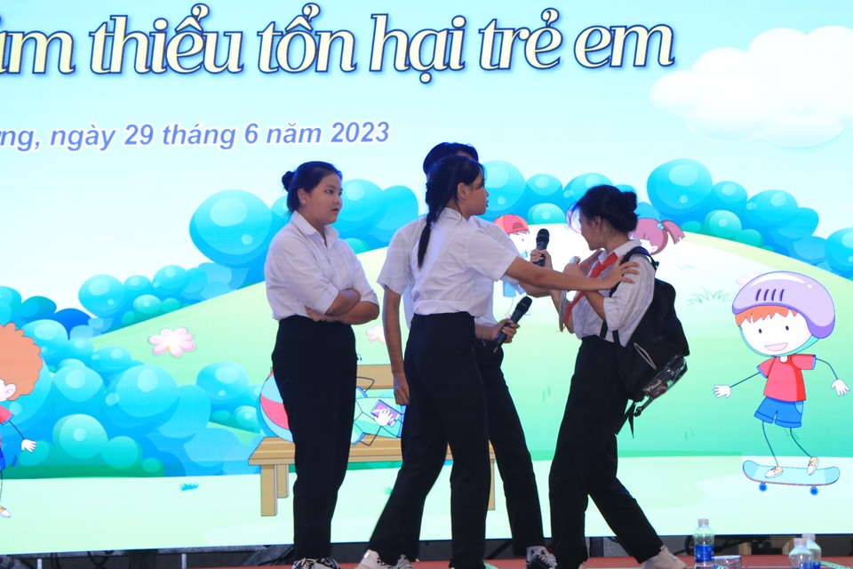Thiếu nhi biểu trình diễn các tiểu phẩm với Chủ đề: “Chung tay giảm thiểu tổn hại trẻ em”