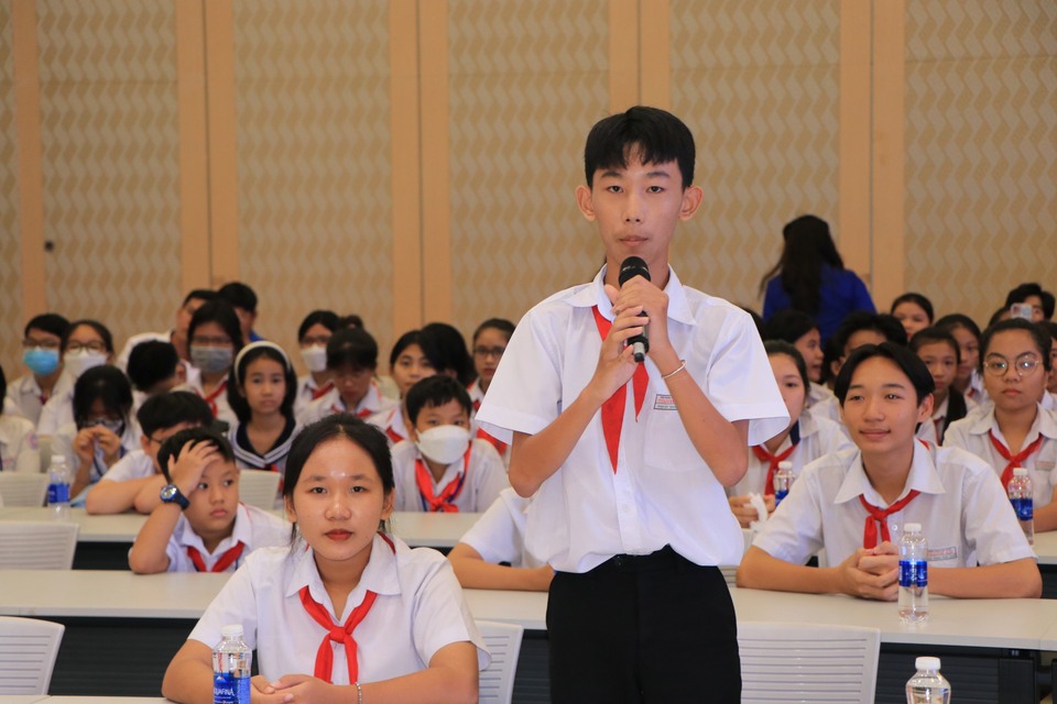 Dịp này, các em đội viên, học sinh tiêu biểu đã quan tâm bày tỏ những tâm tư, tình cảm và đề xuất một số ý kiến, nguyện vọng, xoay quanh một số vấn đề như: tình trạng bạo lực học đường trong nhà trường và ngoài nhà trường, việc sử dụng mạng xã hội sao cho không vi phạm pháp luật và cách thức nhận diện được thông tin nào là chính thống bổ ích, thông tin nào là xấu độc, tìm hiểu các điểm vui chơi an toàn cho trẻ và trẻ thiếu kỹ năng phòng, chống đuối nước, các chương trình dạy bơi miễn phí cho trẻ em, hiện trạng sử dụng thuốc là điện tử trong học sinh… Đại diện lãnh đạo các Sở, Ban, Ngành cũng đã có những giải đáp vô cùng sát đáng, thoả mãn những mong mỏi của các em thiếu nhi.