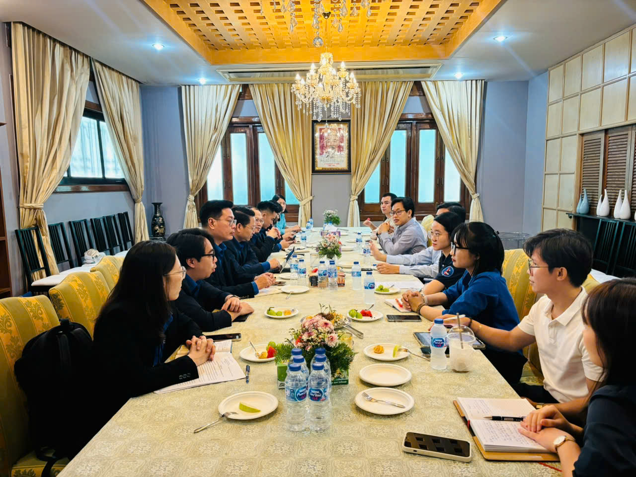 Cùng ngày, Đoàn công tác đã làm việc với Hội sinh viên Việt Nam tại Thái Lan tại Đại sứ quán Việt Nam. Đồng chí Nguyễn Thị Ngọc Diệp, chủ tịch Hội sinh viên Việt Nam tại Thái Lan đã thông tin tình hình thanh niên, sinh viên Việt Nam đang nghiên cứu, học tập, lao động và sinh sống tại Thái Lan hiện nay; các điểm vượt trội trong công tác Hội; các khó khăn, vướng mắc còn cần được khắc phục; mong muốn chuyến thăm và làm việc của Đoàn sẽ mở ra nhiều điều mới mẻ trong công tác thanh niên, sinh viên Việt Nam tại Thái Lan.