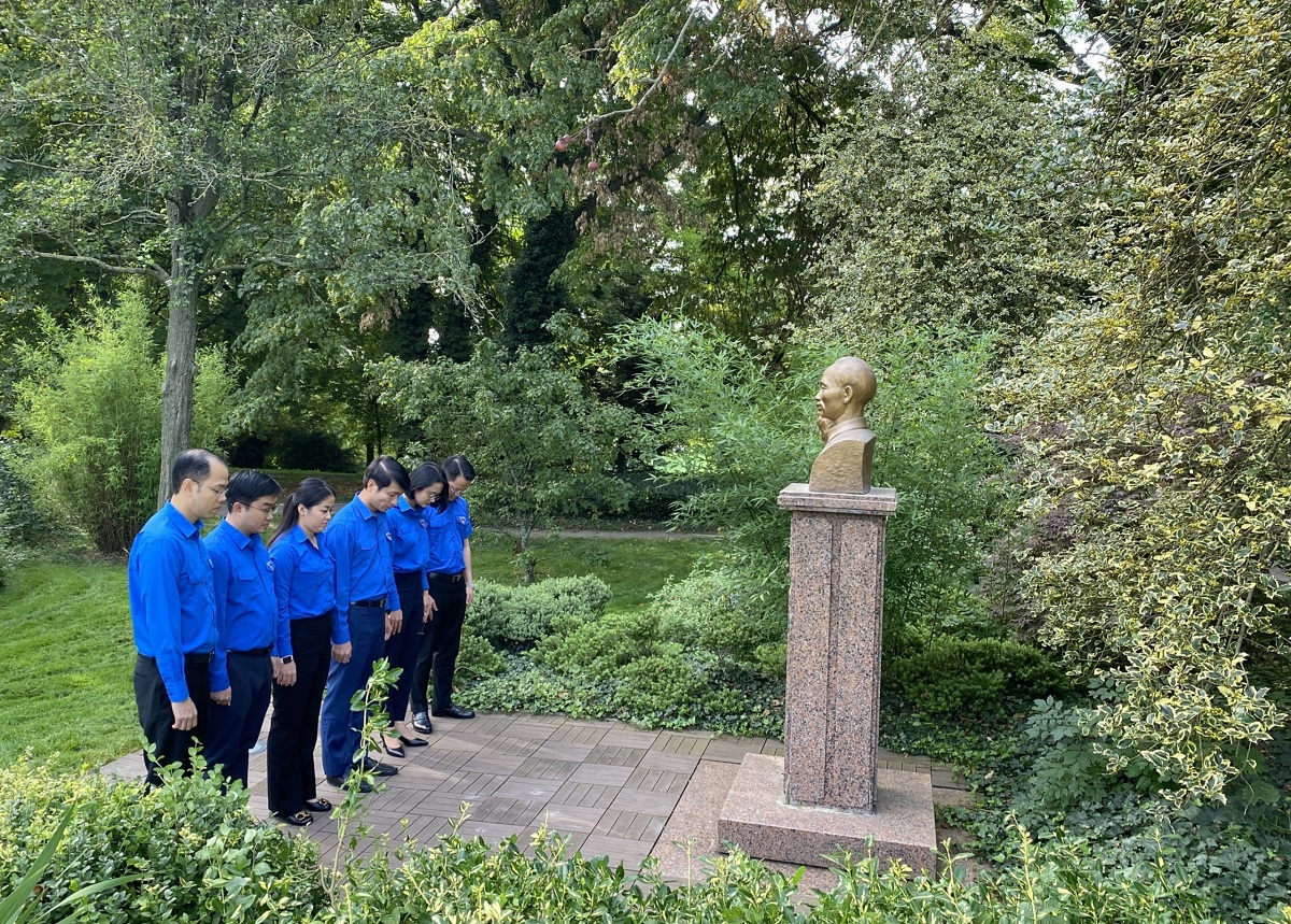 Đồng chí Nguyễn Ngọc Lương, Bí thư Thường trực Trung ương Đoàn, Chủ tịch Hội Liên hiệp Thanh niên Việt Nam cùng đoàn công tác thăm tượng đài Chủ tịch Hồ Chí Minh và Không gian Hồ Chí Minh tại thành phố Montreuil, Cộng hòa Pháp