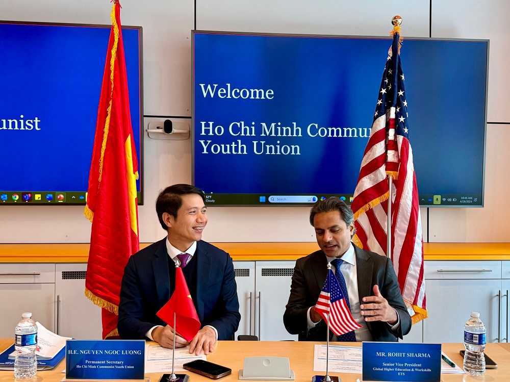 * Trước đó, ngày 19/4 (theo giờ Hoa Kỳ), đoàn công tác đã có buổi làm việc với Viện Khảo thí Giáo dục Hoa Kỳ (ETS). Ông Rohit Sharma, Phó Chủ tịch cấp cao ETS, bà Đoàn Nguyễn Vân Khanh, Phó Tổng Giám đốc CTCP IIG Việt Nam tiếp đoàn.