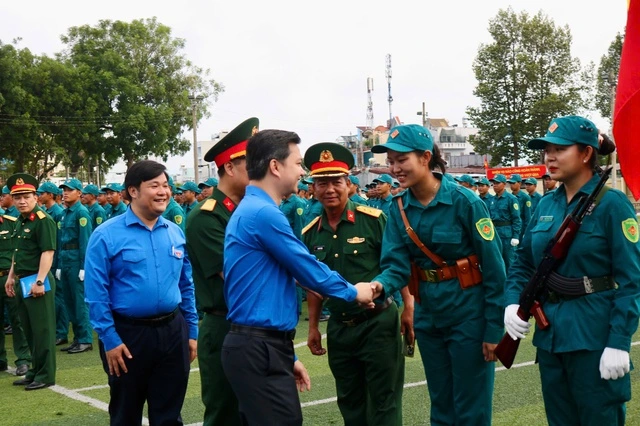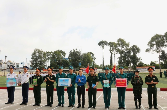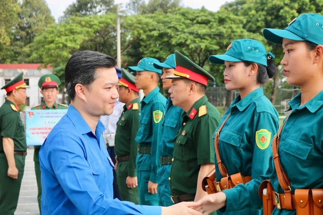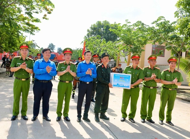 Sáng cùng ngày, đoàn công tác đã đến thăm, động viên và tặng quà cho lực lượng thanh niên công an tại Tiểu đoàn Cảnh sát đặc nhiệm số 2 (TP.Thủ Đức) và lực lượng thanh niên quân đội ở Trường Quân sự Quân khu 7 (Q.12).