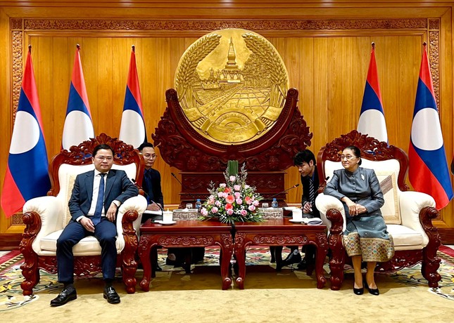 Bí thư thứ nhất T.Ư Đoàn Nguyễn Anh Tuấn và Phó Chủ tịch nước CHDCND Lào Pany Yathotou tại buổi tiếp kiến.