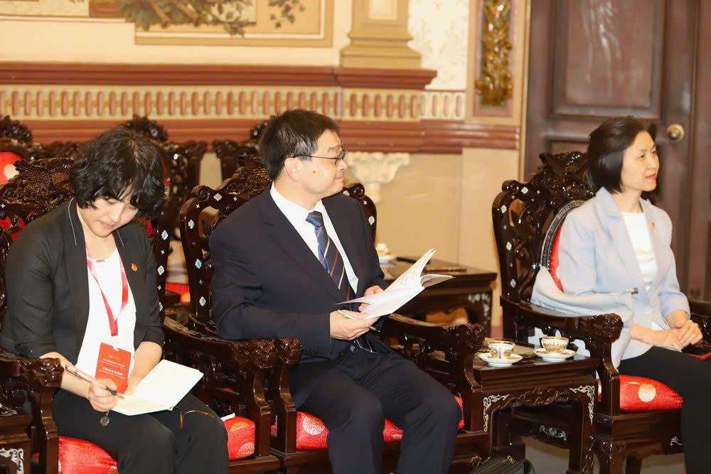 Dự buổi tiếp đoàn đại biểu, về phía TP. Hồ Chí Minh có đồng chí Nguyễn Văn Được, Ủy viên Trung ương Đảng, Phó Bí thư Thành ủy, Chủ tịch UBND TP. Hồ Chí Minh; đồng chí Nguyễn Mạnh Cường, Ủy viên Ban Thường vụ Thành ủy, Trưởng Ban Tuyên giáo và Dân vận Thành ủy; đồng chí Đặng Quốc Toàn, Chánh Văn phòng UBND thành phố; đồng chí Phạm Dứt Điểm, quyền Giám đốc Sở Ngoại vụ; đồng chí Bùi Tá Hoàng Vũ, Giám đốc Sở Công thương.