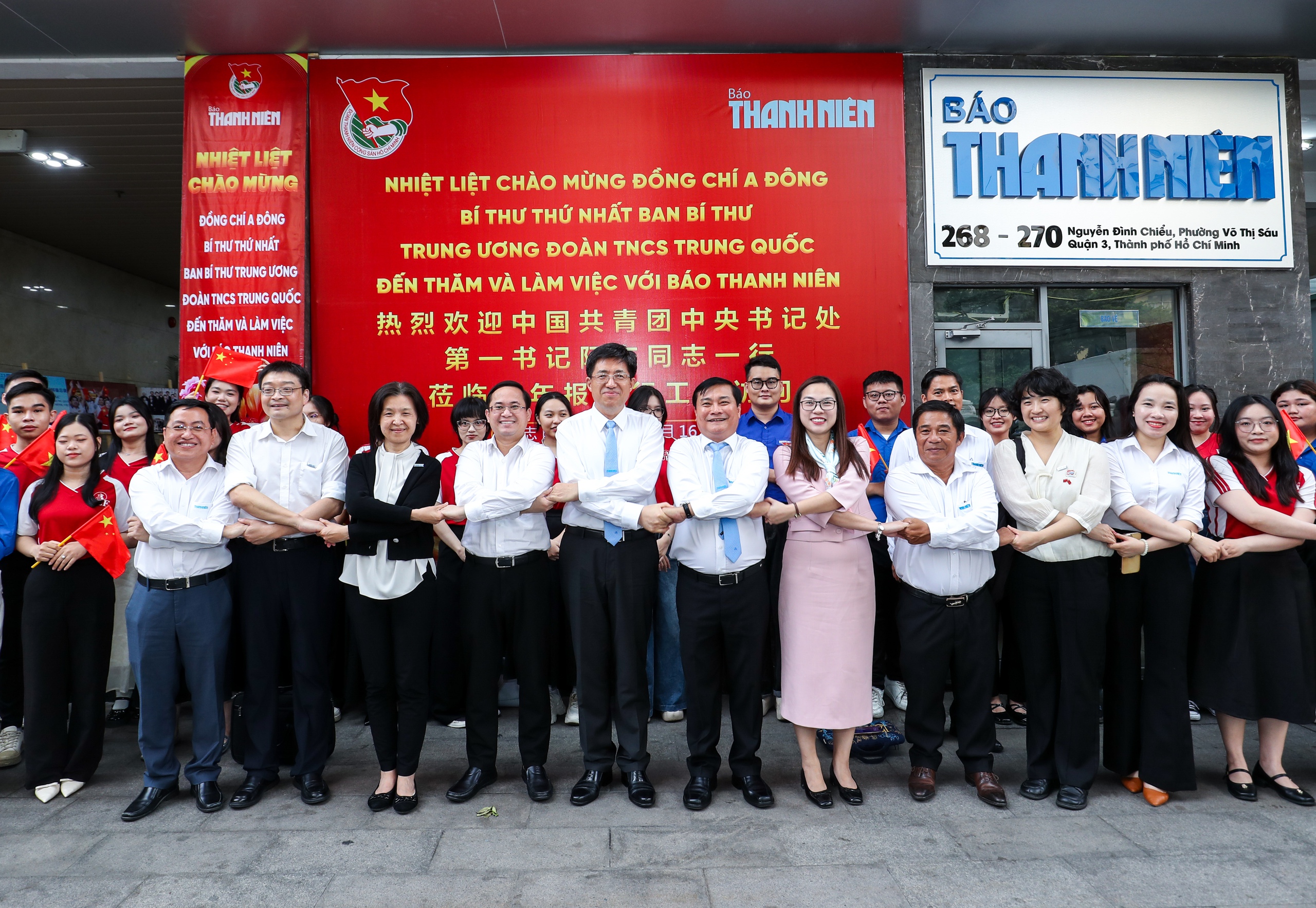 Sau khi xem clip giới thiệu về Báo Thanh Niên, đồng chí A Đông rất ấn tượng với sự phát triển về nội dung số của Báo Thanh niên Việt Nam, đặc biệt thực hiện rất tốt việc tuyên truyền trên đa nền tảng mạng xã hội như Facebook, TikTok, YouTube… "Bên cạnh đó, những kinh nghiệm tuyên truyền về thông tin quốc tế của Báo Thanh Niên rất đáng để chúng tôi học tập", Bí thư thứ nhất Ban Bí thư Trung ương Đoàn TNCS Trung Quốc nhấn mạnh.