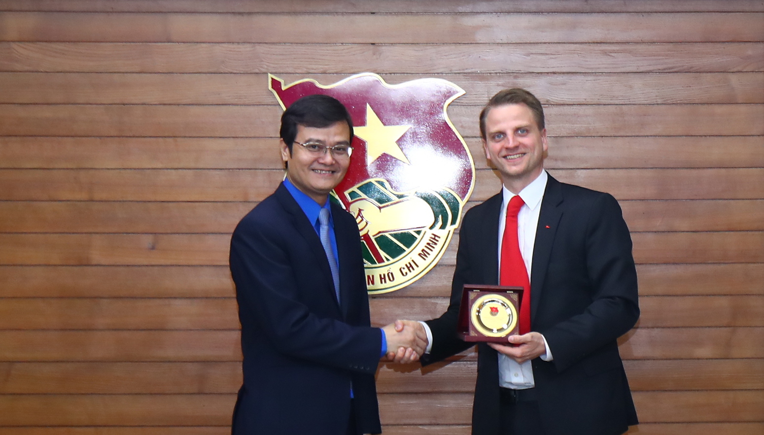 Trao đổi tại buổi làm việc, đồng chí Bùi Quang Huy, Bí thư thứ nhất Trung ương Đoàn cho biết, sau gần 50 năm thiết lập quan hệ ngoại giao và hơn 10 năm thiết lập quan hệ Đối tác chiến lược, quan hệ Việt Nam – Đức ngày càng được củng cố, vun đắp phát triển tốt đẹp. Việt Nam luôn coi trọng làm sâu sắc hơn nữa mối quan hệ với Đức trên mọi lĩnh vực.
