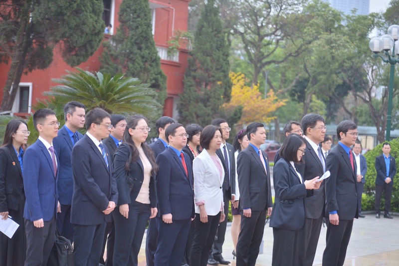 Thay mặt tuổi trẻ hai nước Việt Nam và Trung Quốc, đồng chí A Đông, Bí thư thứ nhất Trung ương Đoàn TNCS Trung Quốc và đồng chí Bùi Quang Huy, Uỷ viên dự khuyết BCH Trung ương Đảng, Bí thư thứ nhất Trung ương Đoàn TNCS Hồ Chí Minh đã thành kính dâng lẵng hoa mang dòng chữ: 'Đoàn đại biểu tham dự Gặp gỡ hữu nghị thanh niên Việt Nam – Trung Quốc lần thứ 24 năm 2025 kính dâng!