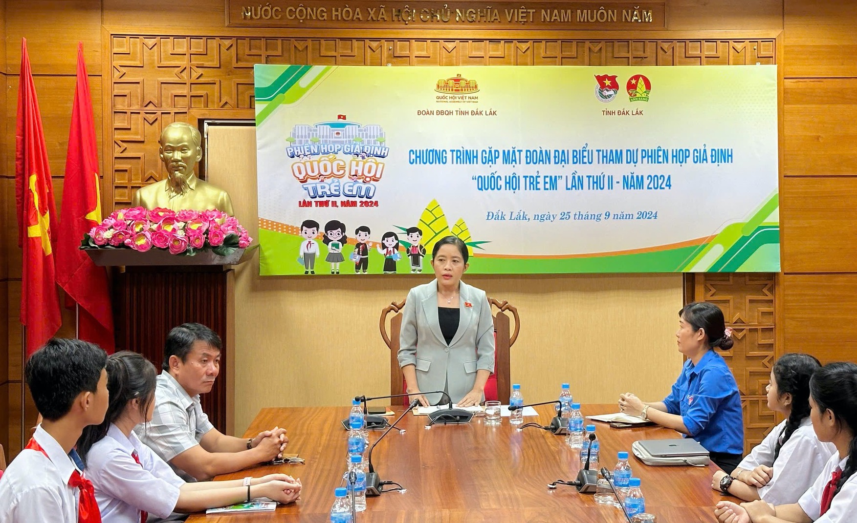 Phiên họp giả định “Quốc hội trẻ em” lần thứ II, năm 2024 sẽ diễn ra từ ngày 27-29/9/2024 tại TP. Hà Nội với sự tham gia của hơn 300 đại biểu thiếu nhi trên cả nước, trong đó tỉnh Đắk Lắk có 4 đại biểu là thiếu nhi gương mẫu, tiêu biểu tại các địa phương.