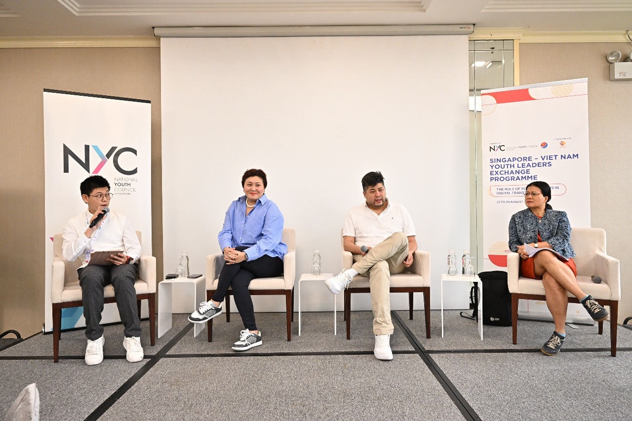 Chiều ngày 25/8/2023, đoàn đại biểu Việt Nam - Singapore đã tham dự phiên toàn thể về chuyển đổi số với sự góp mặt của 03 diễn giả: Ông Bryan Choo (Nhà sáng lập Tập đoàn Truyền thông TheSmartLocal), Bà Farah Abduh Rahim (Giám đốc Truyền thông Bộ Tài chính Singapore MOF), Bà Thao Griffiths (META) dưới sự điều phối của Ông Luo Chen Jun (Trưởng ban nội dung chương trình của Mạng lưới Lãnh đạo trẻ Nam - Singapore SVYLN).