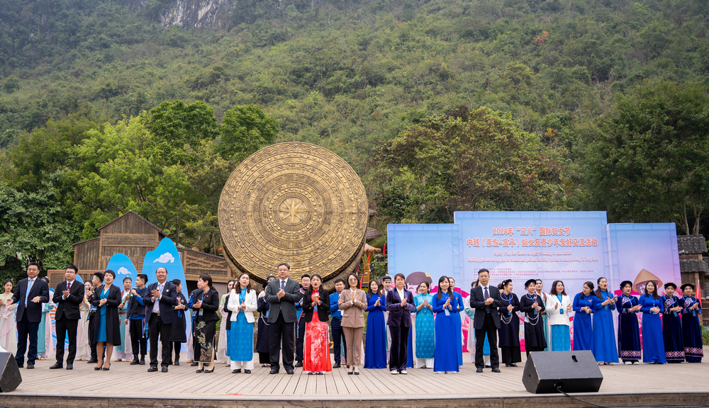 Tại Quảng trường Trống đồng khu cảnh quan phía Trung Quốc, thanh thiếu niên, phụ nữ tỉnh Cao Bằng (Việt Nam) và thành phố Sùng Tả (Trung Quốc) cùng tham gia hoạt động giao lưu với chủ đề “Cùng thúc đẩy hợp tác cởi mở, tạo ra tương lai tốt đẹp hơn”.