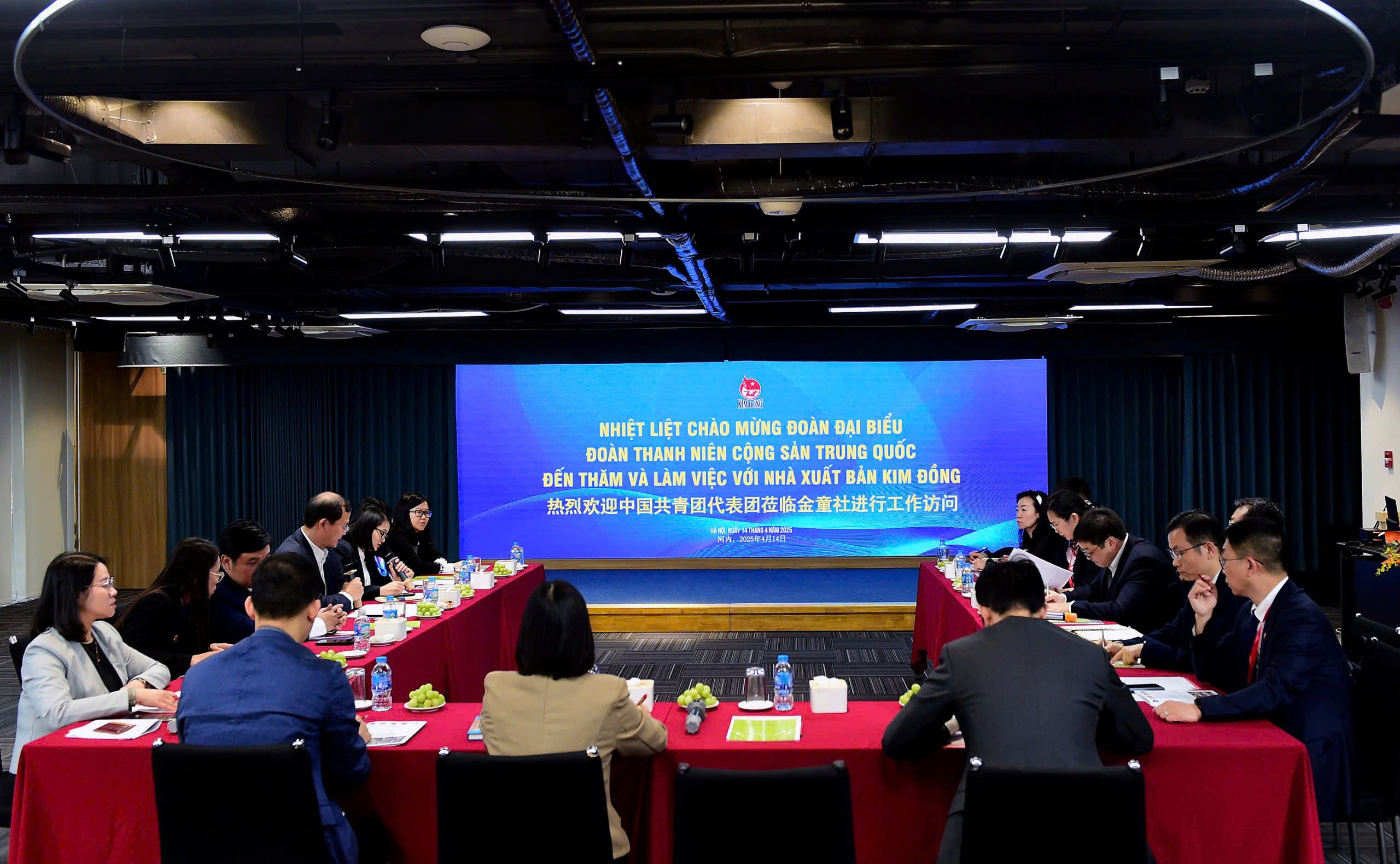 Cùng với việc trao đổi, chia sẻ thông tin, đoàn đại biểu Trung ương Đoàn TNCS Trung Quốc đã tham quan và được giới thiệu một số ấn phẩm tiêu biểu gắn với quá trình phát triển của nhà xuất bản mang tên người anh hùng Kim Đồng (bí danh của Nông Văn Dền - một thiếu niên người dân tộc Nùng, ở xóm Nà Mạ, xã Trường Hà, huyện Hà Quảng, tỉnh Cao Bằng).