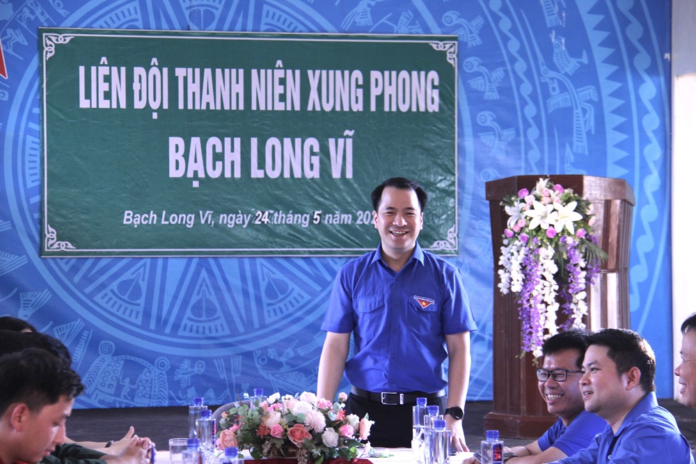 Bí thư T.Ư Đoàn Ngô Văn Cương phát biểu tại buổi làm việc với Liên đội TNXP Bạch Long Vĩ