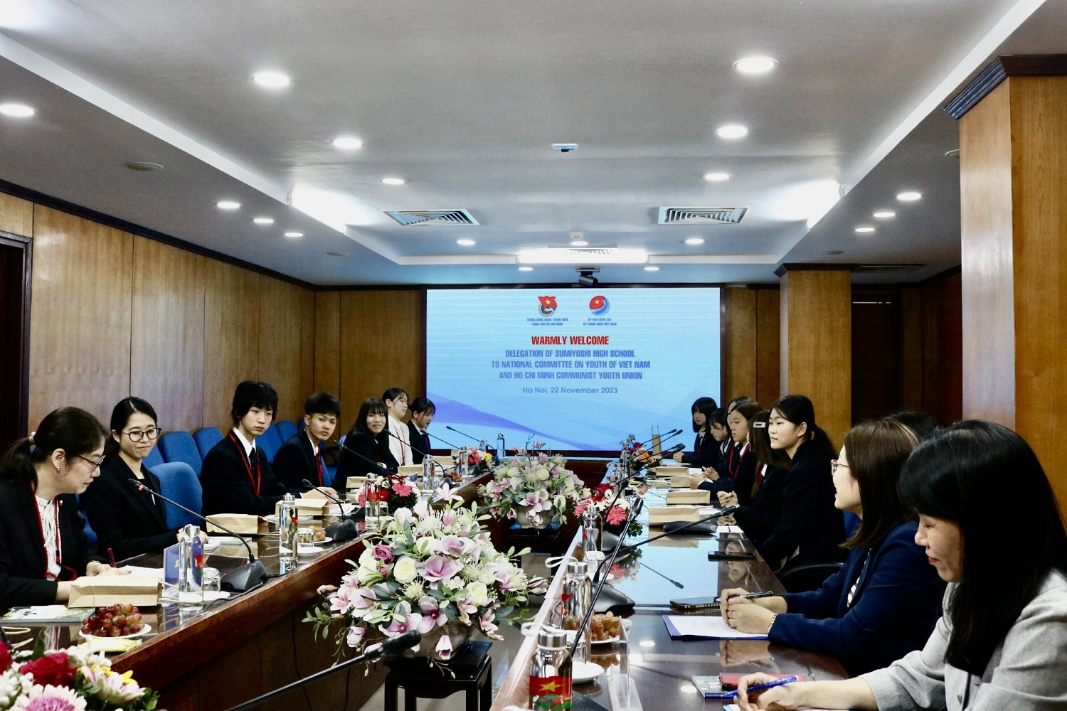 Chào mừng đoàn đại biểu giáo viên và các em học sinh Trường THPT Sumiyoshi, Nhật Bản đến thăm trụ sở của Uỷ ban Quốc gia về Thanh niên Việt Nam và và Trung ương Đoàn TNCS Hồ Chí Minh, Tổng Thư ký UBQG về Thanh niên Việt Nam đã giới thiệu một số thông tin cơ bản về các tổ chức thanh niên Việt Nam, Ủy ban quốc gia về thanh niên Việt Nam, hệ thống giáo dục của Việt Nam; Giới thiệu về hợp tác thanh niên Việt Nam – Nhật Bản.