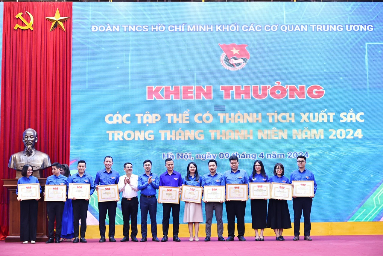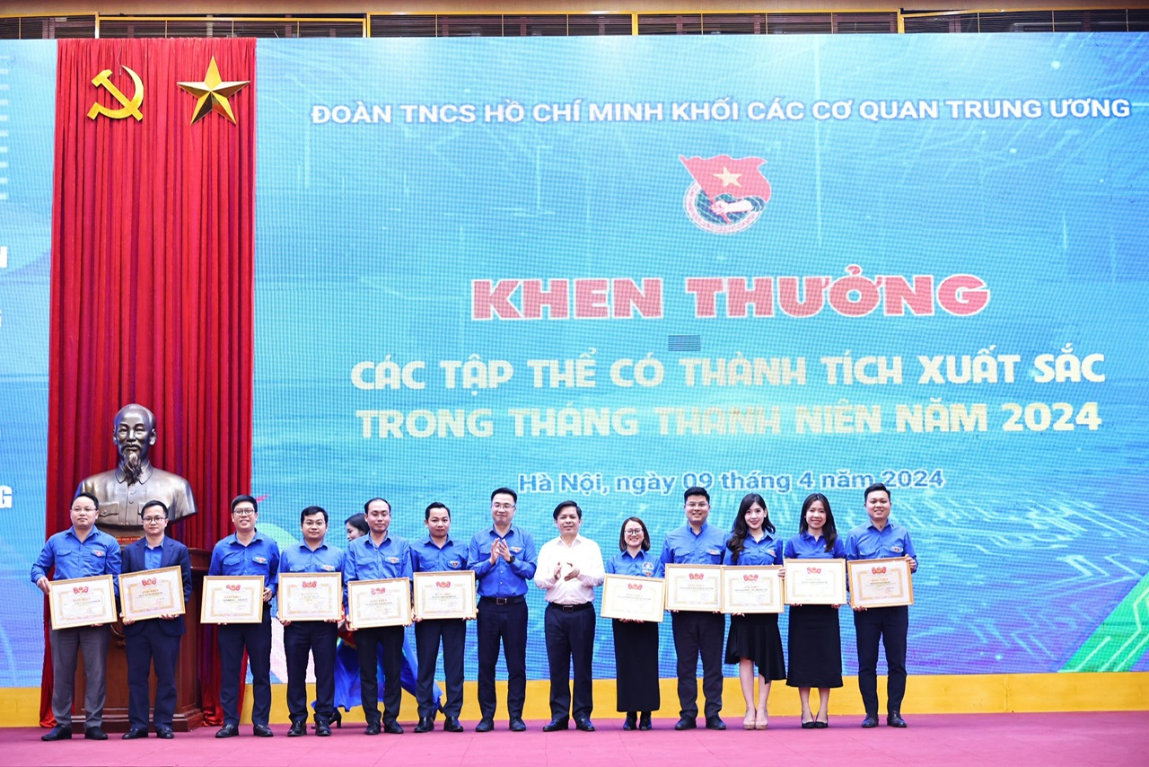 Trong khuôn khổ Chương trình, Ban Thường vụ Đoàn Khối đã tổ chức khen thưởng cho 34 đơn vị đạt thành tích xuất sắc trong triển khai Tháng Thanh niên năm 2024.