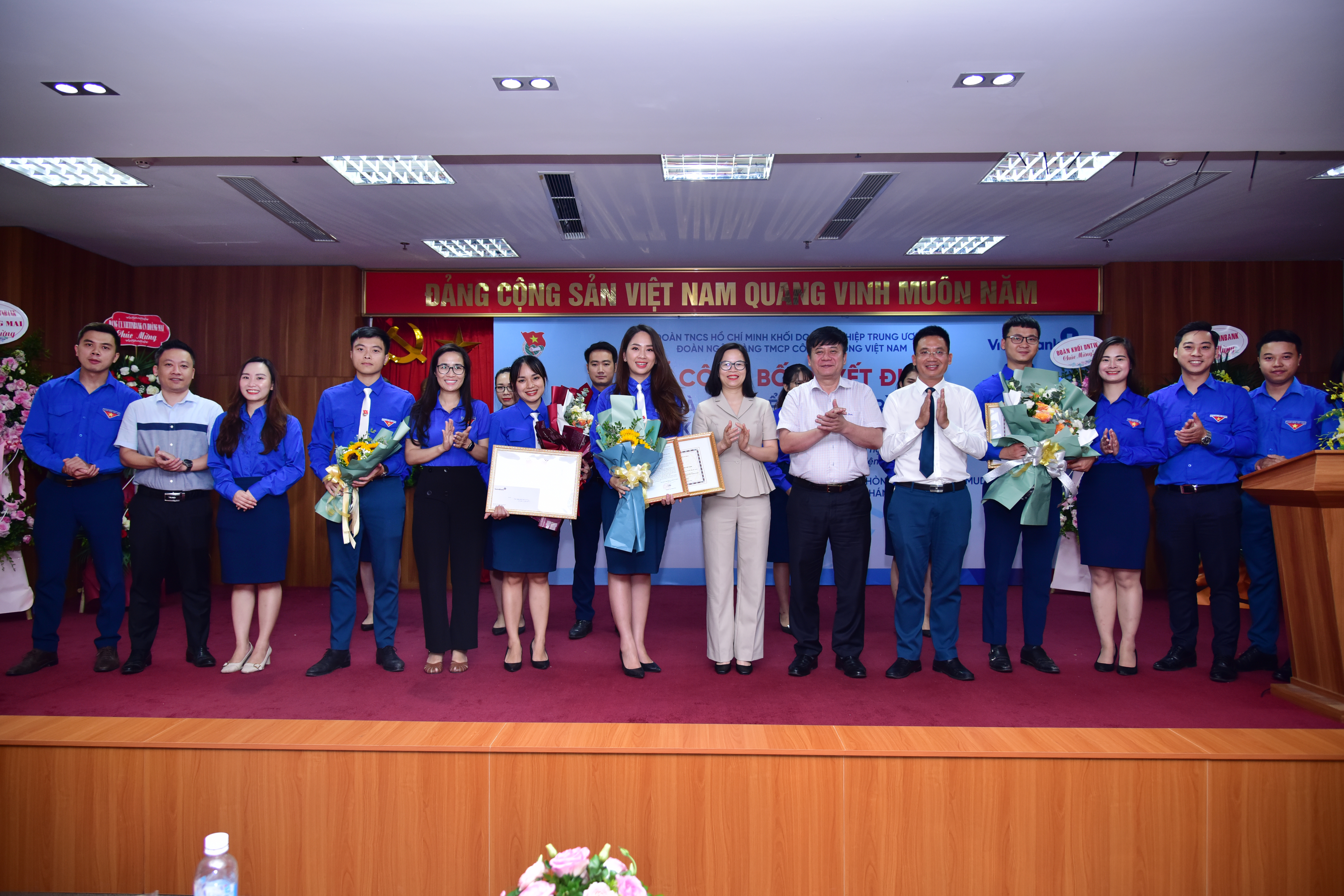 Tại buổi Lễ, Ban Thường vụ Đoàn Khối đã trao Quyết định khen thưởng dành cho tập thể Đoàn cơ sở VietinBank chi nhánh Hoàng Mai và các cá nhân có thành tích tốt trong việc thi đua đảm nhận và triển khai công trình thanh niên.