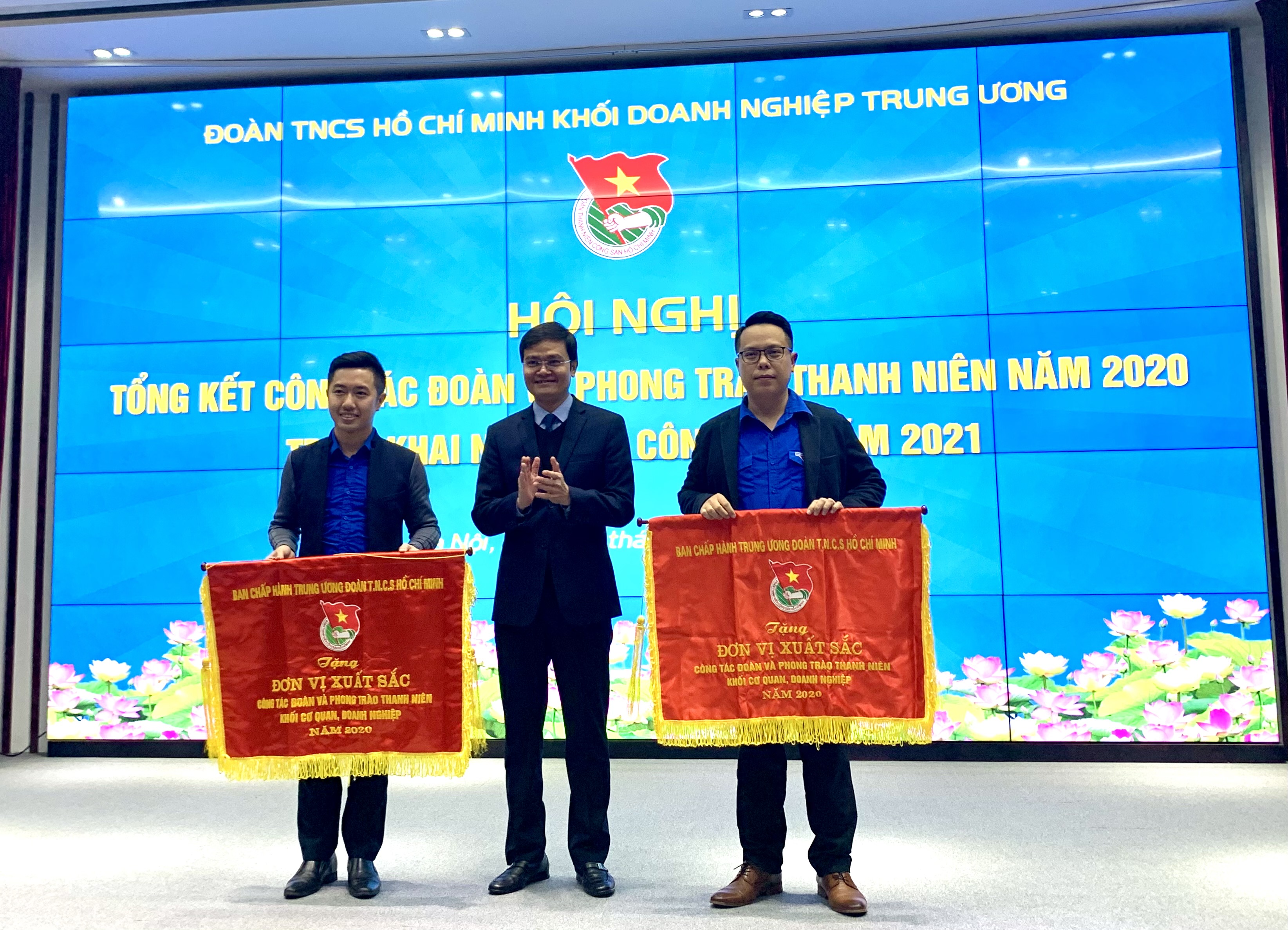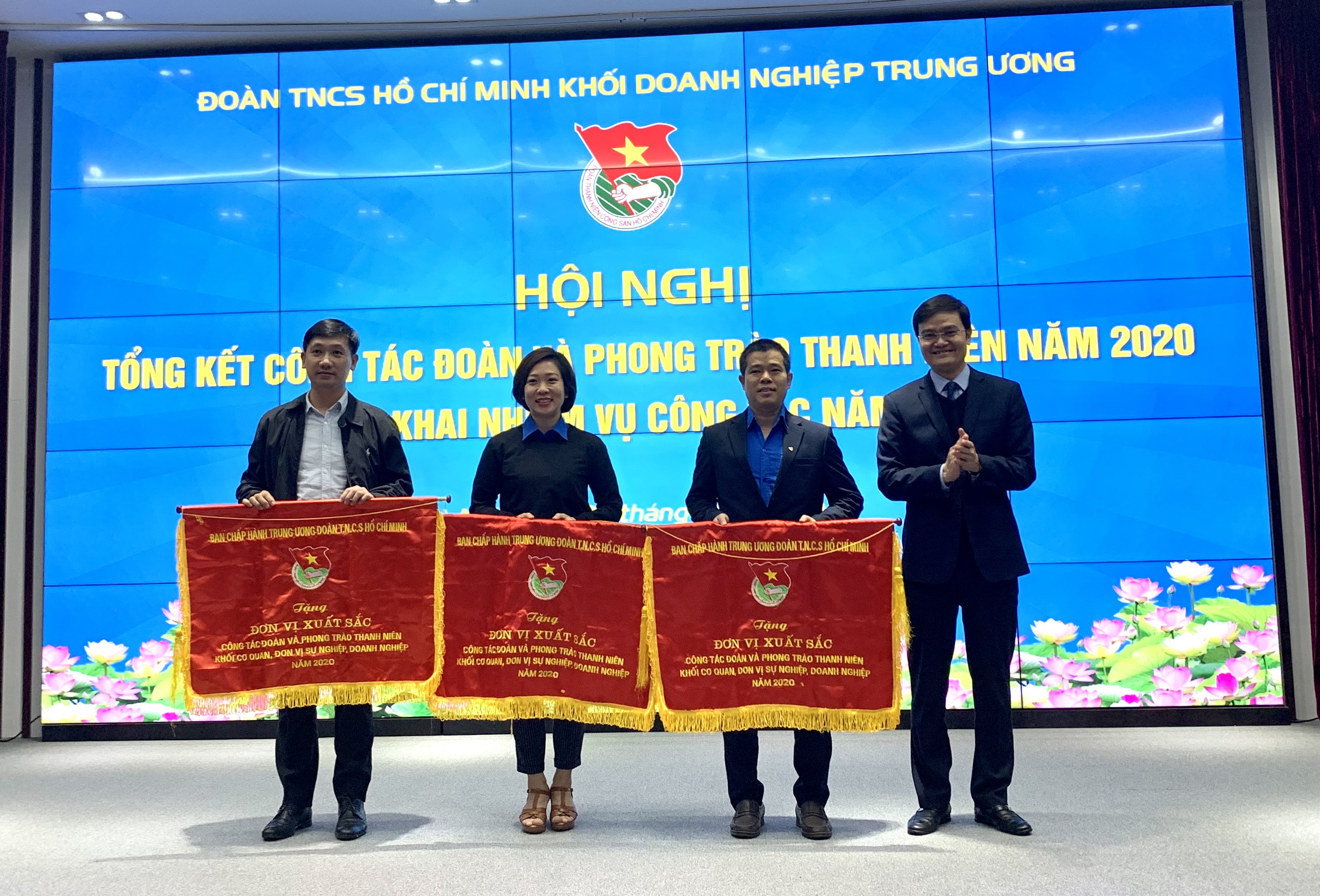 Bí thư Thường trực Trung ương Đoàn TNCS Hồ Chí Minh, Chủ tịch Trung ương Hội Sinh viên Việt Nam Bùi Quang Huy tặng Cờ thi đua xuất sắc công tác Đoàn và phong trào thanh niên năm 2020 cho Đoàn Khối Doanh nghiệp Trung ương