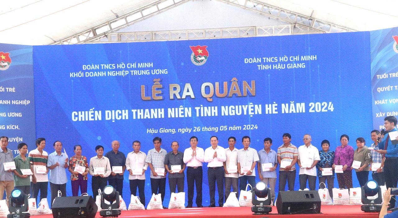 Dịp này, Ban Bí thư Trung ương Đoàn TNCS Hồ Chí Minh, Ban Thường vụ Tỉnh ủy Hậu Giang và Đoàn khối Doanh nghiệp Trung ương đã trao tặng, hỗ trợ vốn vay của Quỹ Quốc gia về việc làm cho Tỉnh đoàn Hậu Giang trị giá 01 tỷ đồng; tặng 10 ngôi nhà yêu thương cho người dân, đoàn viên, thanh niên có hoàn cảnh khó khăn; trao 100 suất học bổng, 15 xe đạp cho học sinh nghèo; 20 phần quà cho gia đình khó khăn và 20 phần quà cho thanh niên công nhân nhà máy Nhiệt điện Sông Hậu 1, tổng giá trị kinh phí hơn 1 tỷ 850 triệu đồng. Sau lễ ra quân, diễn ra các hoạt động: Tổ chức Lễ khởi công Ngôi nhà yêu thương tại thị trấn Một Ngàn, huyện Châu Thành A; khánh thành 01 công trình thanh niên “Thắp sáng đường quê” tại ấp Phú Xuân, thị trấn Mái Dầm, huyện Châu Thành và tổ chức lớp tập huấn cán bộ Đoàn, Hội do Đoàn khối Doanh nghiệp năm 2024.